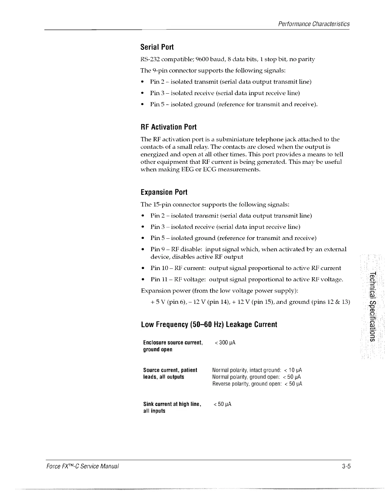 Valleylab Force FX-C - Serial Port; RF Activation Port; Expansion Port; Low Frequency (50-60 Hz) Leakage Current