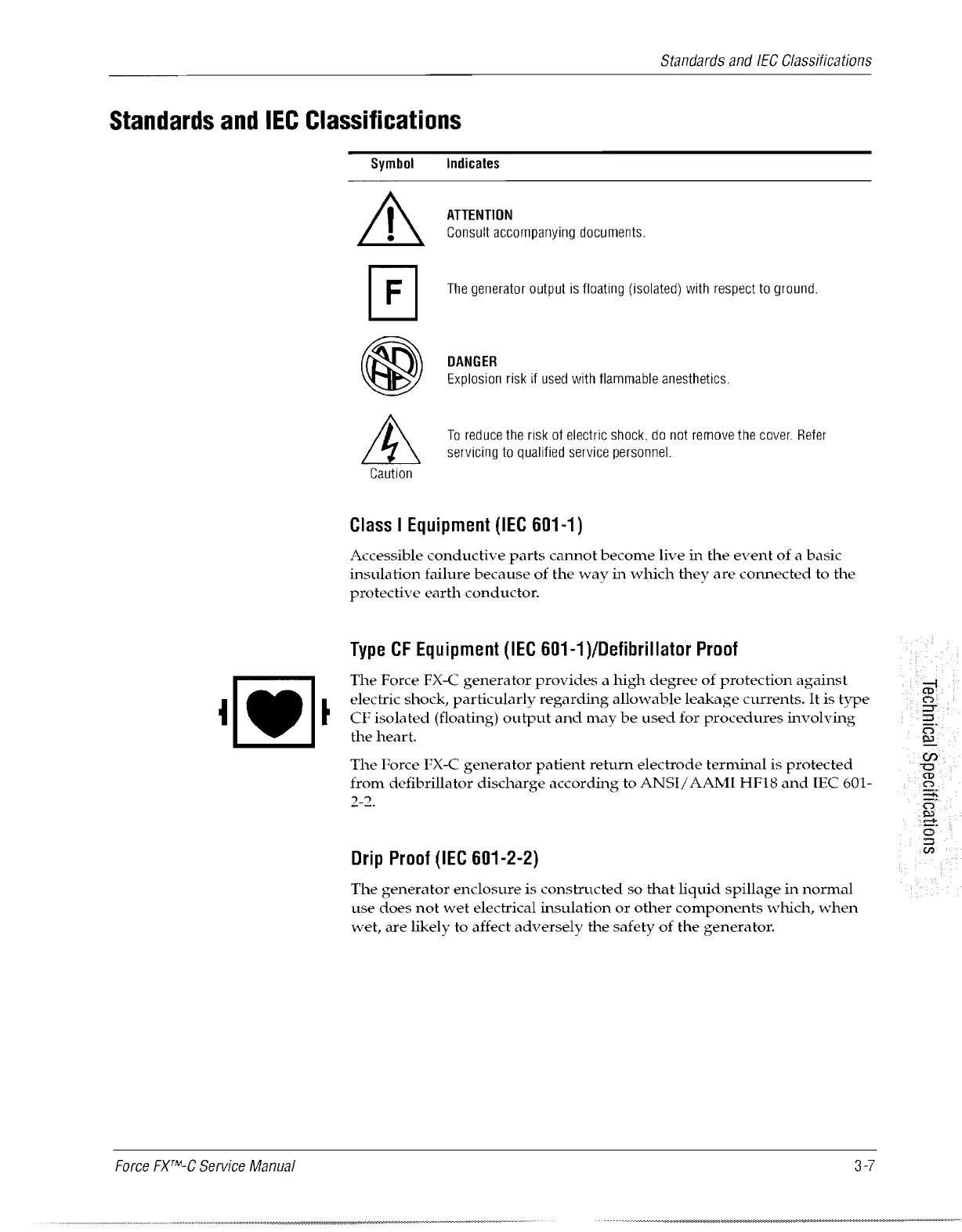 Valleylab Force FX-C - Standards and IEC Classifications; Class I Equipment(IEC 601-1); Type CF Equipment (IEC 601-1);Defibriliator Proof; Drip Proof (IEC 601-2-2)