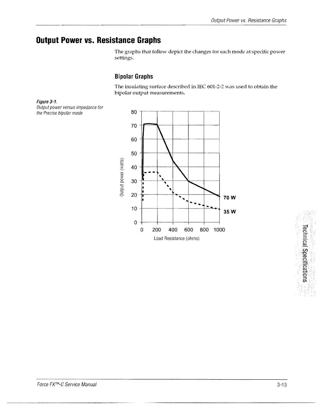 Valleylab Force FX-C - Output Power Vs. Resistance Graphs; Bipolar Graphs