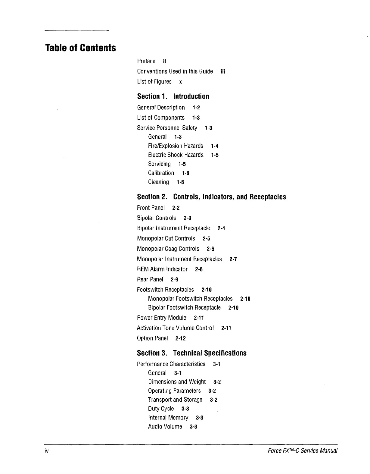 Valleylab Force FX-C - Table of Contents