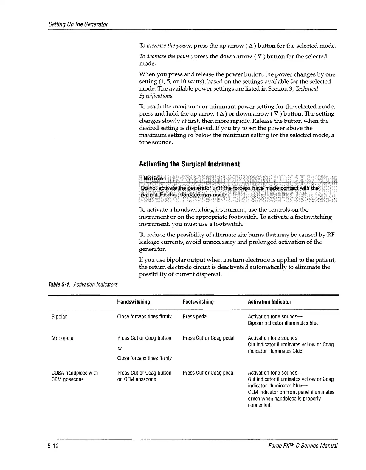 Valleylab Force FX-C - Activating the Surgical Instrument