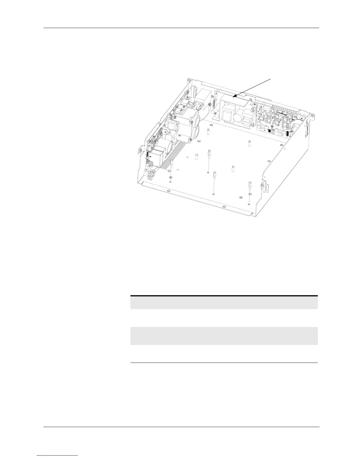 1. Position the LV power supply board on the rear wall of the chassis, aligning