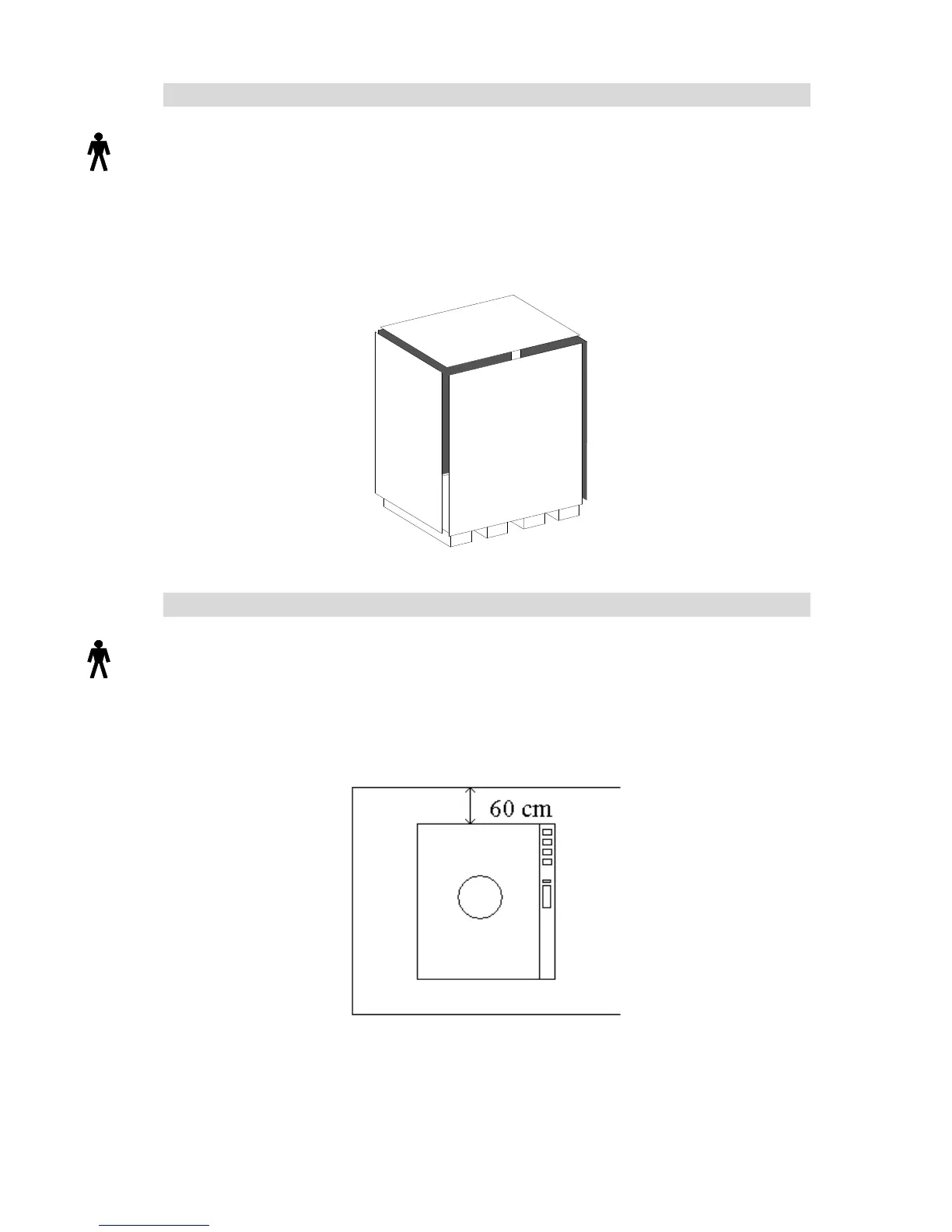 600 kg per m² for the weight of the machine, and position the appliance at least 60