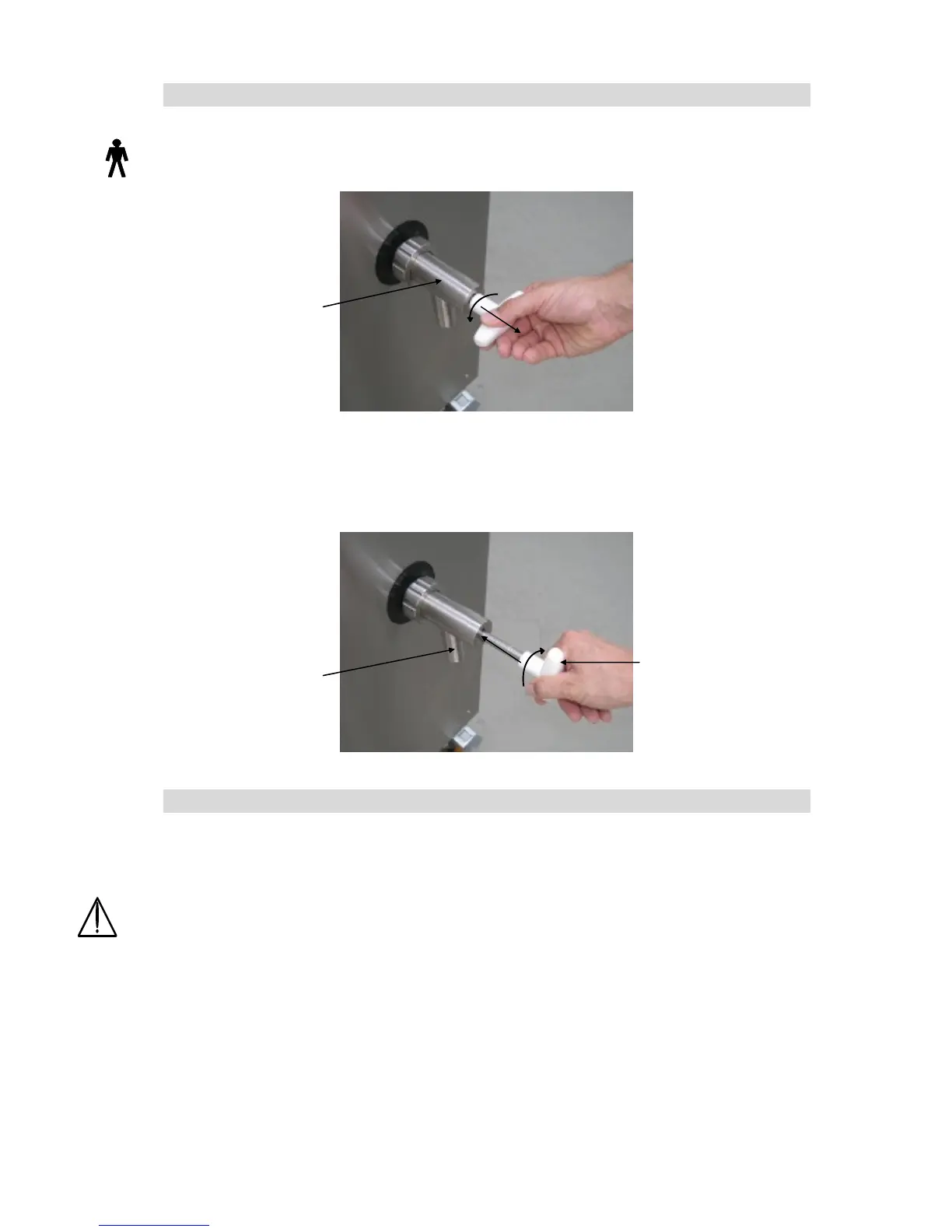 The outlet valve opens by turning the handle in the counter-clockwise direction