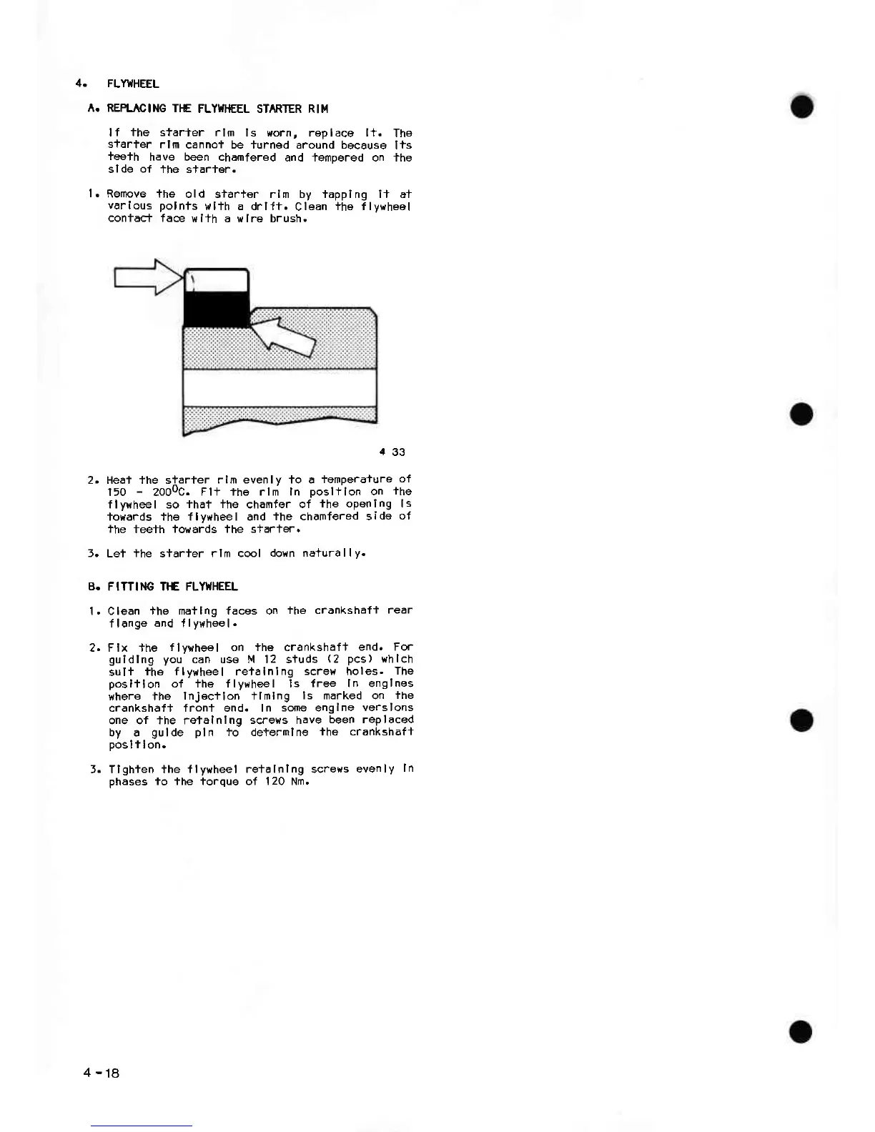 Valmet 309 - Flywheel; A. REPLACING THE FLYWHEEL STARTER RIM; B. FITTING THE FLYWHEEL