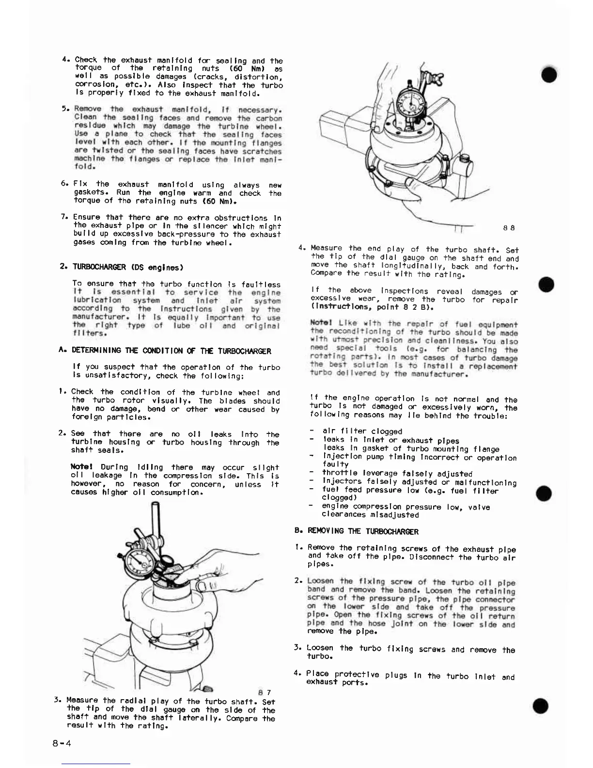 Valmet 612 - TURBOCHARGER INSPECTION AND REMOVAL; A. DETERMINING THE CONDITION OF THE TURBOCHARGER