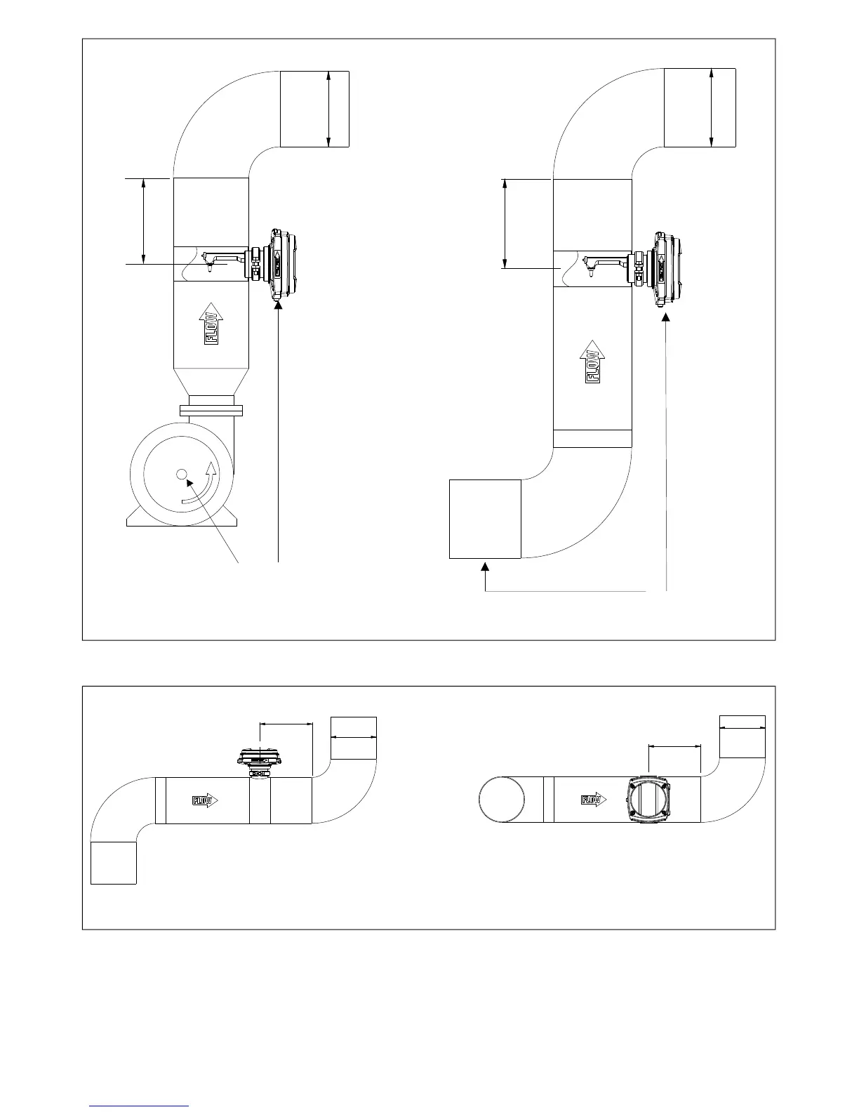 Fig. 2. Valmet MCA-F Installation on a horizontal pipe: A. after a vertical pipe, B. after a bend in the pipe.