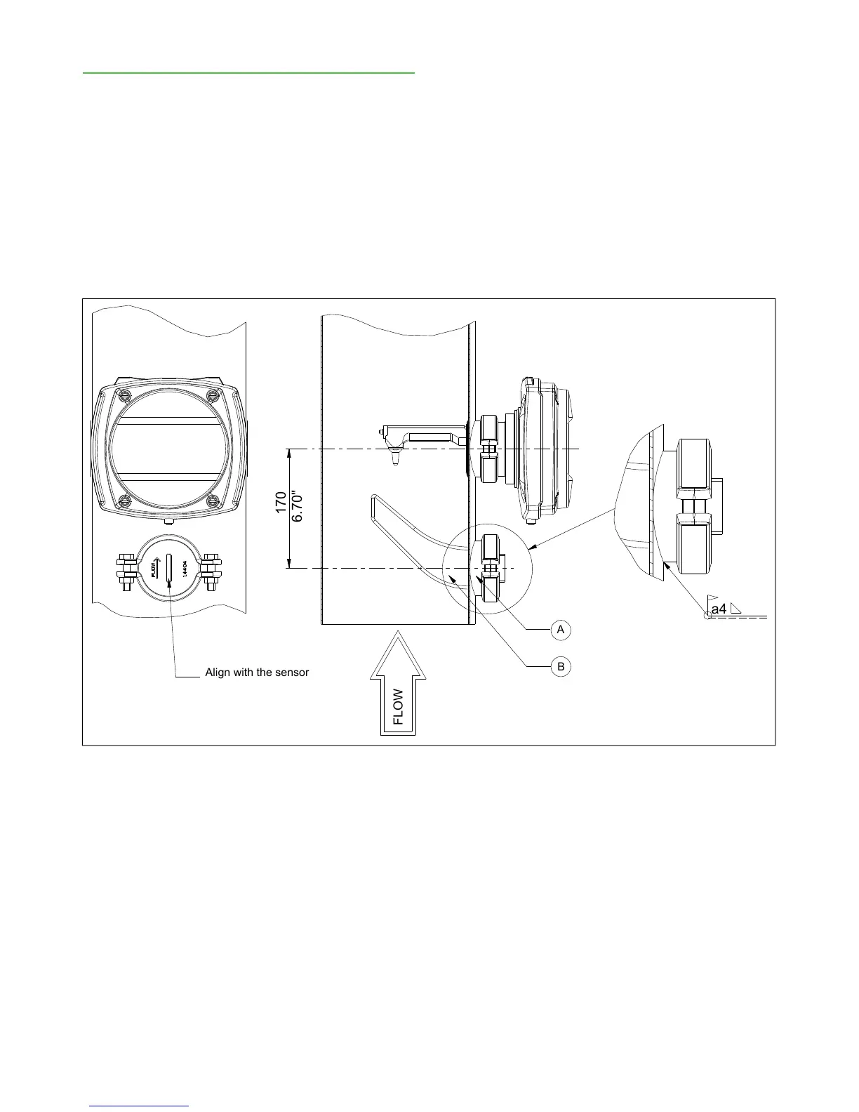 Fig. 18. Valmet MCA-F Sensor deflector plate installation guide, A. Saddle, B. Deflector plate.