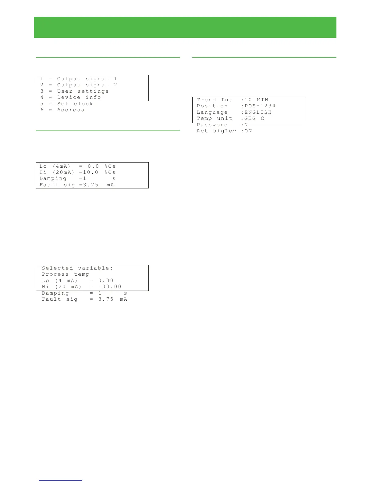 Configuration/User settings. The following menu ap-