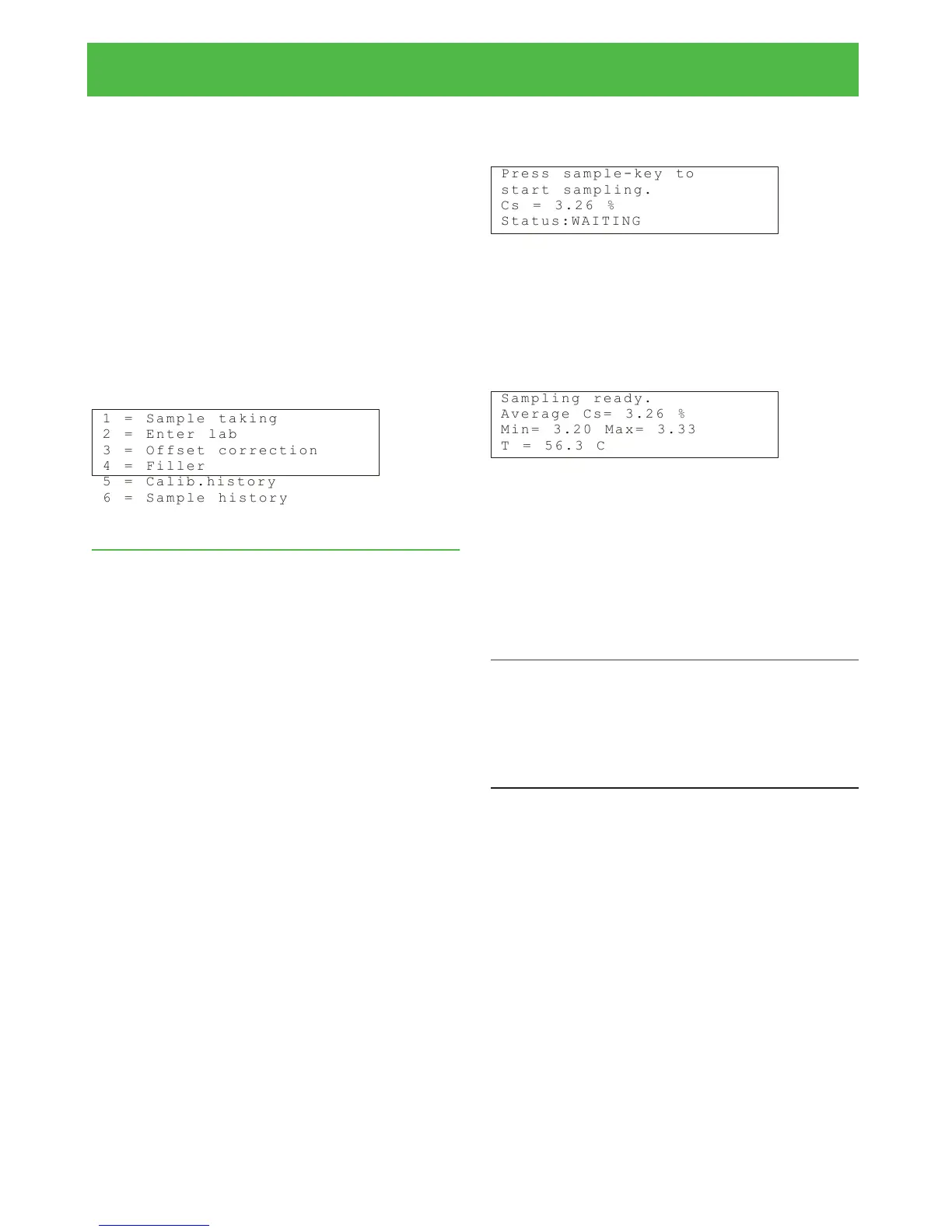 a menu other than Take calib. sample, the device begins