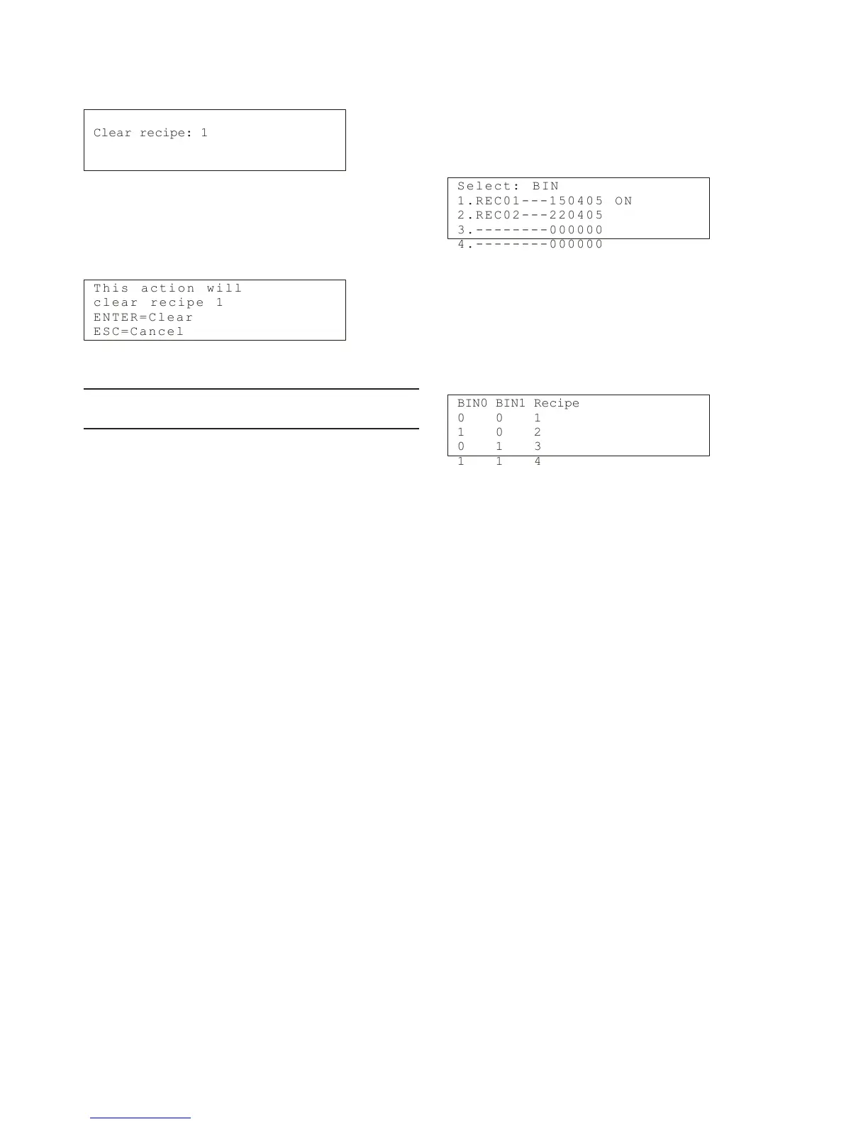 press 2 (Clear Recipe). The following display appears.