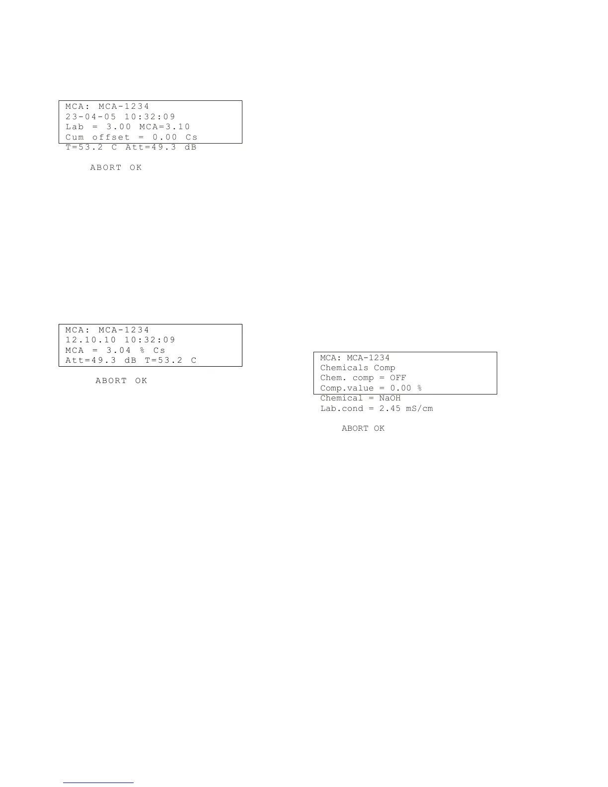 the calibrations. Press ABORT (F3) to exit the menu.