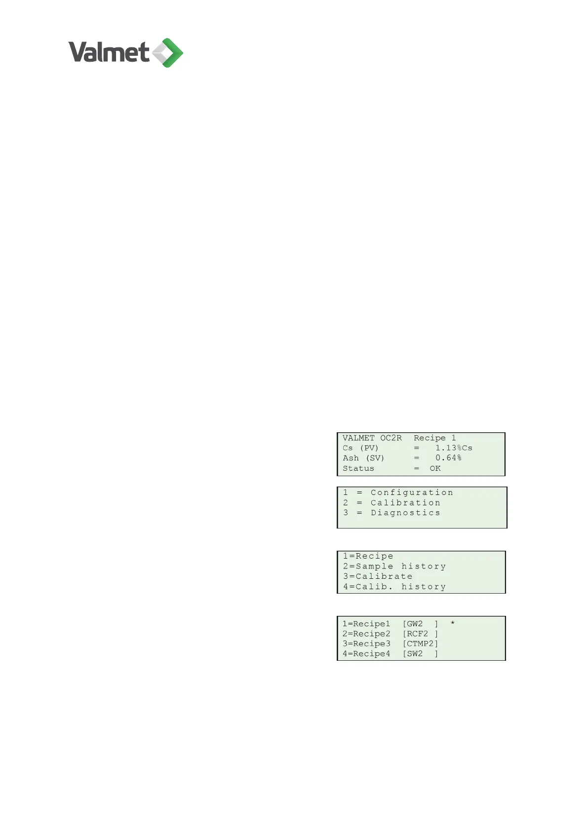 Select a recipe, 1–4. In this example recipe 1 is