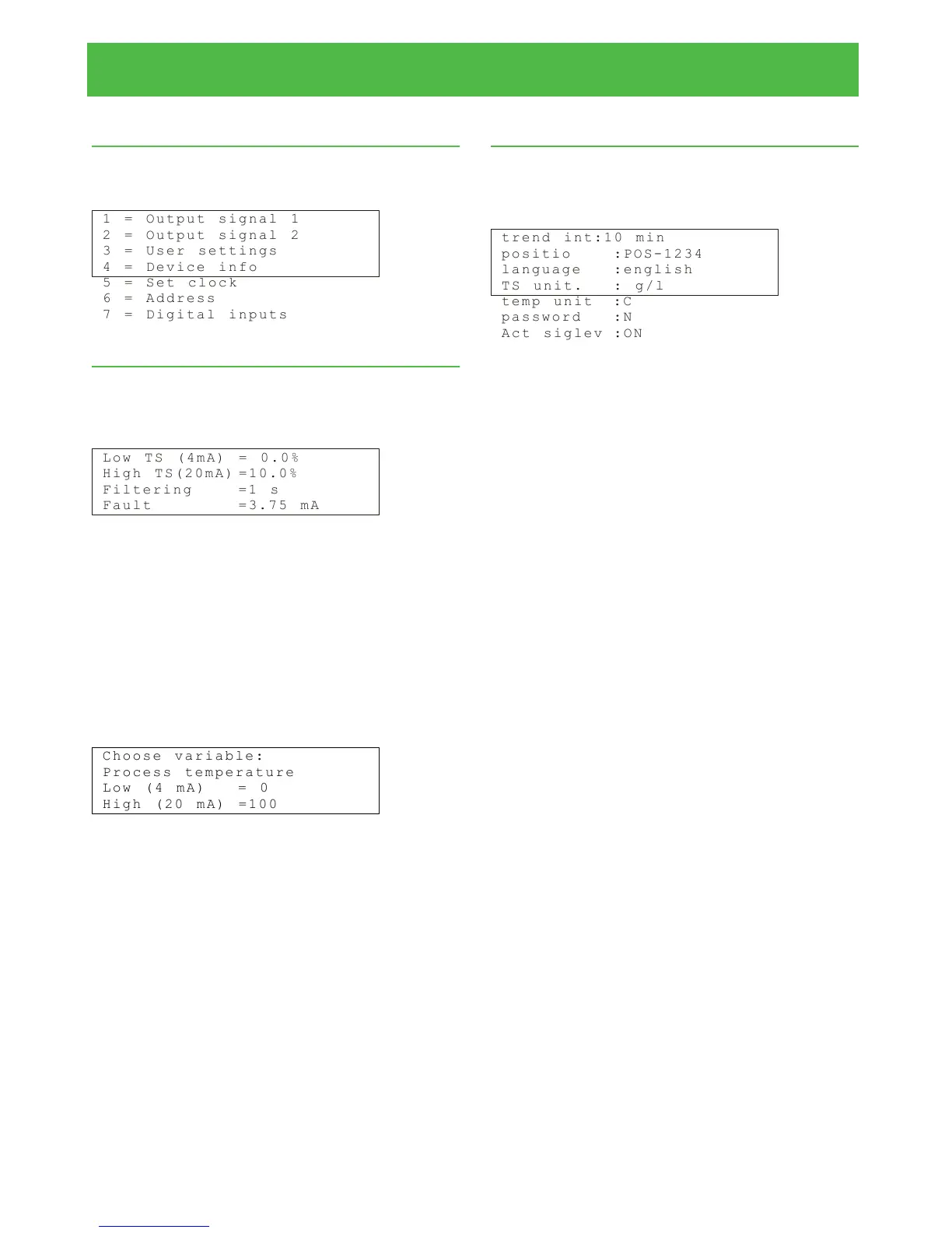 tions menu. Configure the total solids content output: