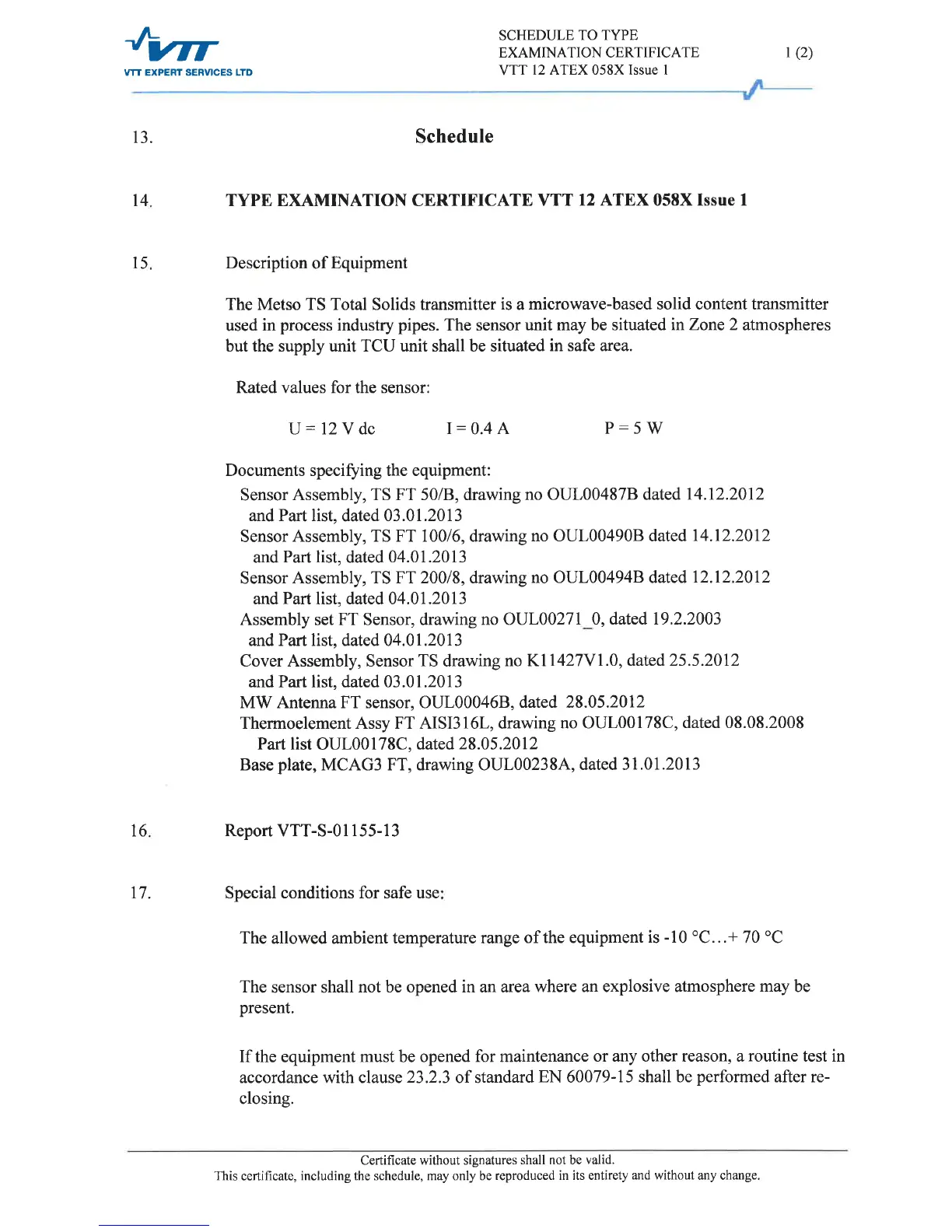Valmet TS - ATEX Schedule Details