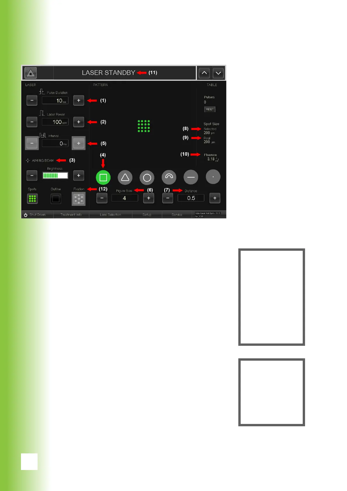 Adjust the power of the laser pulse at Laser Power (2)