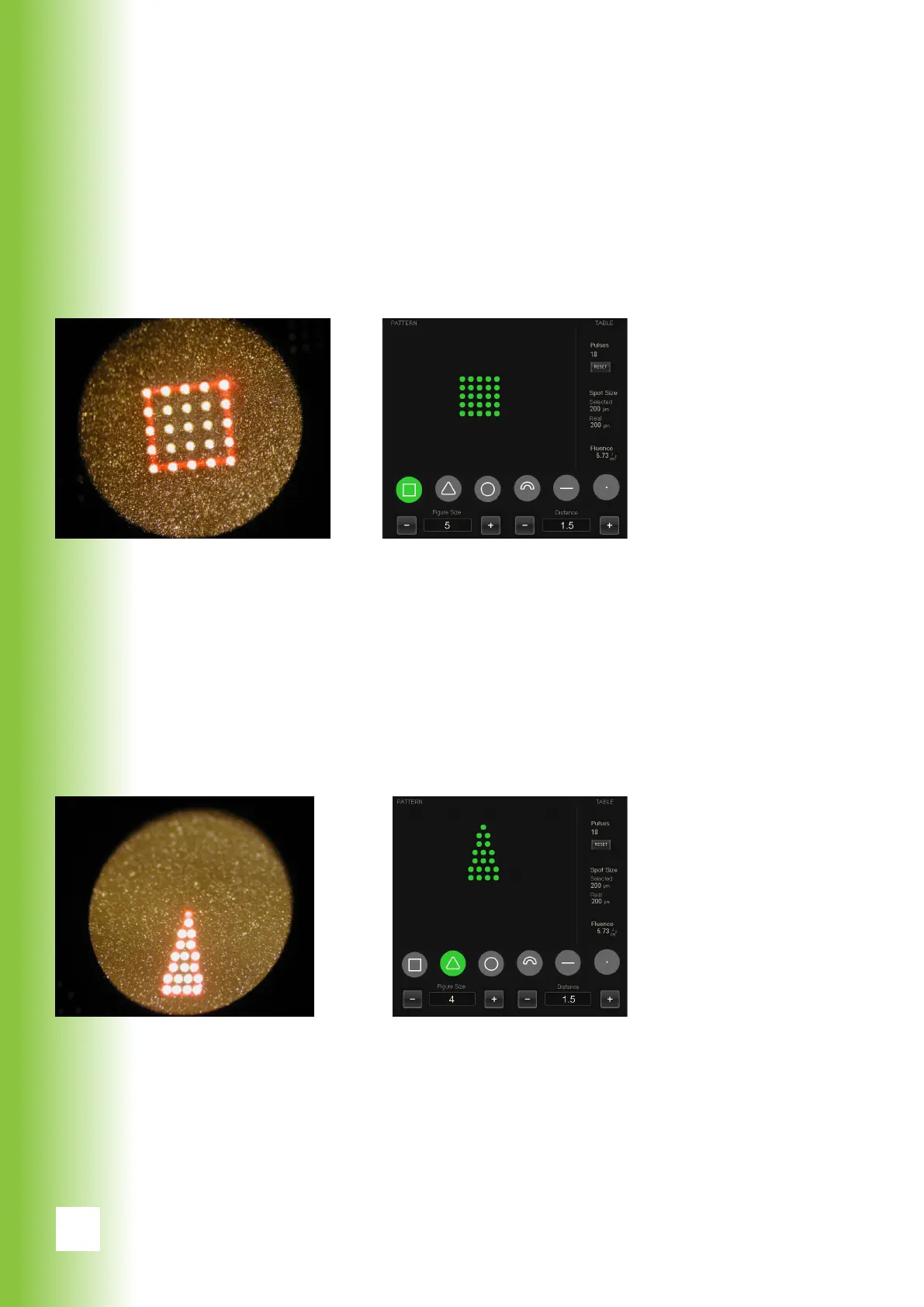 1-5 for spot sizes (50 μm,) 100 μm and 200 μm and 1-4 for