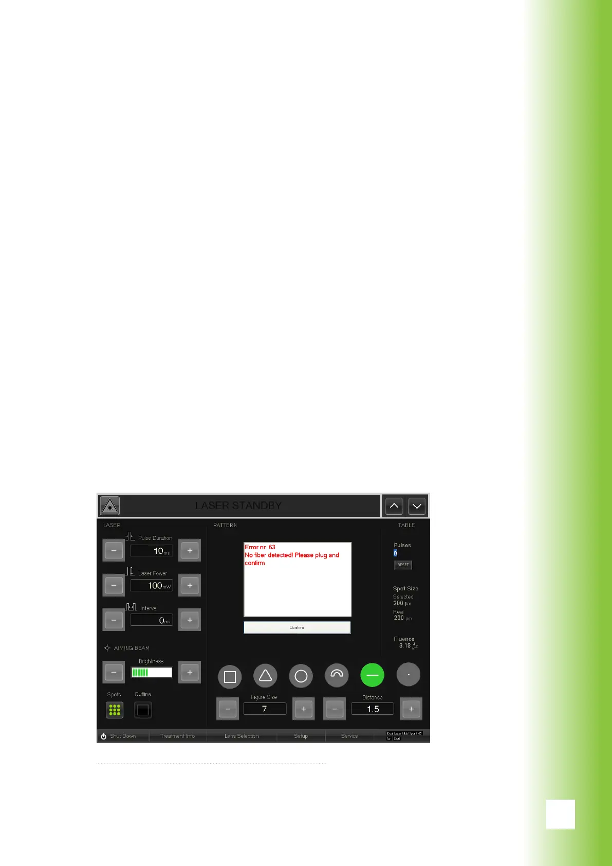 displayed, all other buttons are inactive and the laser is