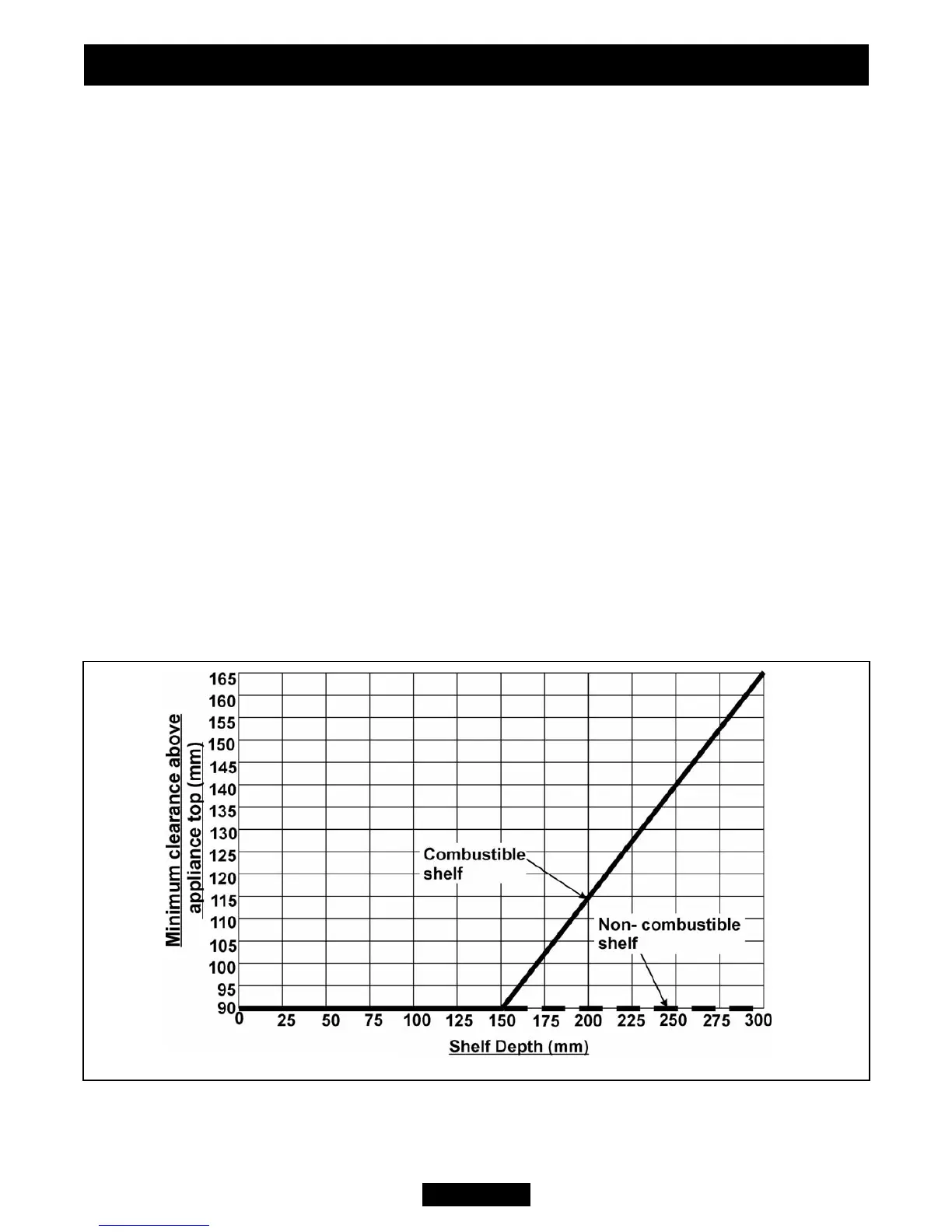 For a shelf made from wood or other combustible materials deeper than 150mm,