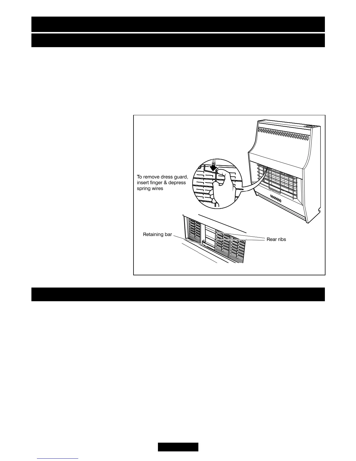Remove the dress guard by pressing down the two hooks at the top. Tilt the guard
