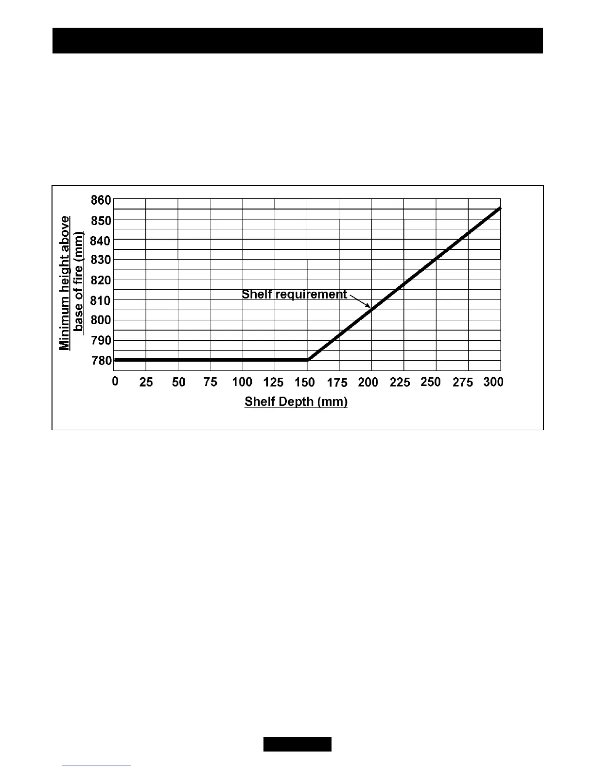 The minimum height from the base of the fire to the underside of any shelf made from
