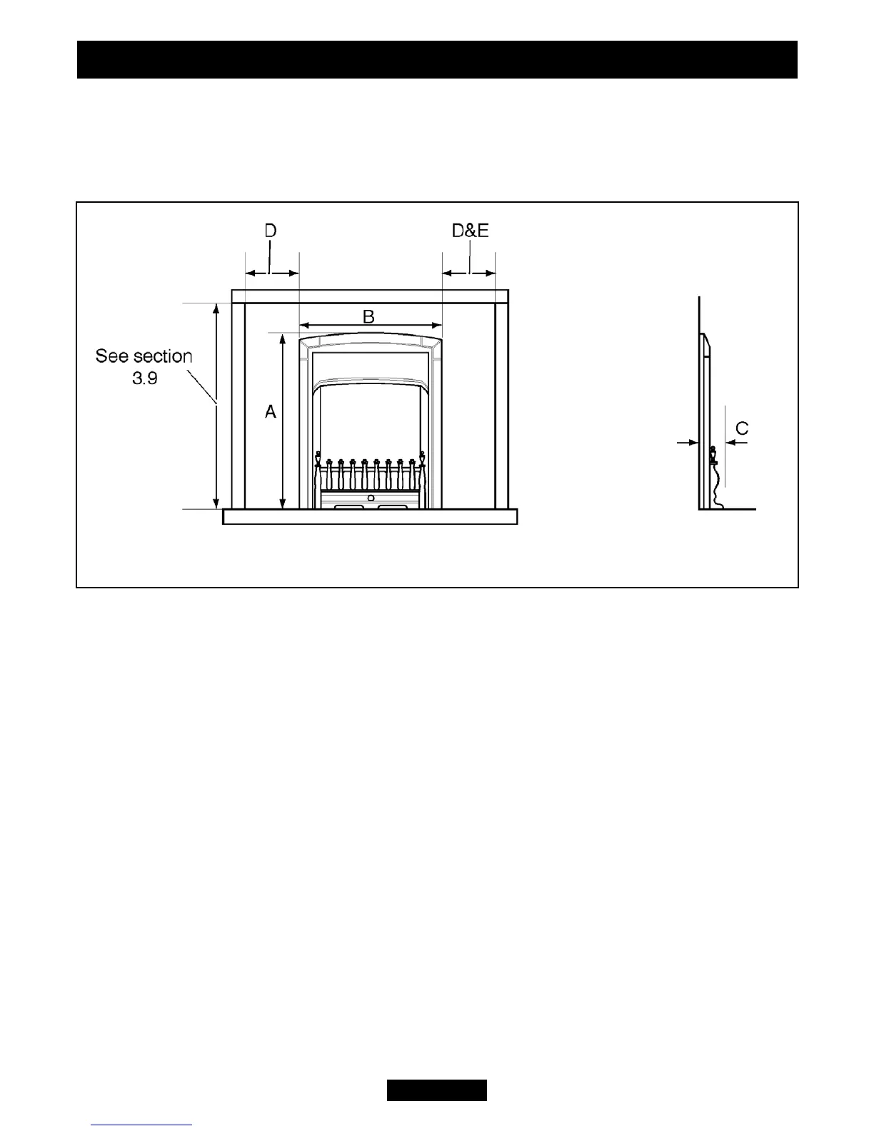 3.9.2 The minimum allowable distance from the outside of the appliance fascia to a