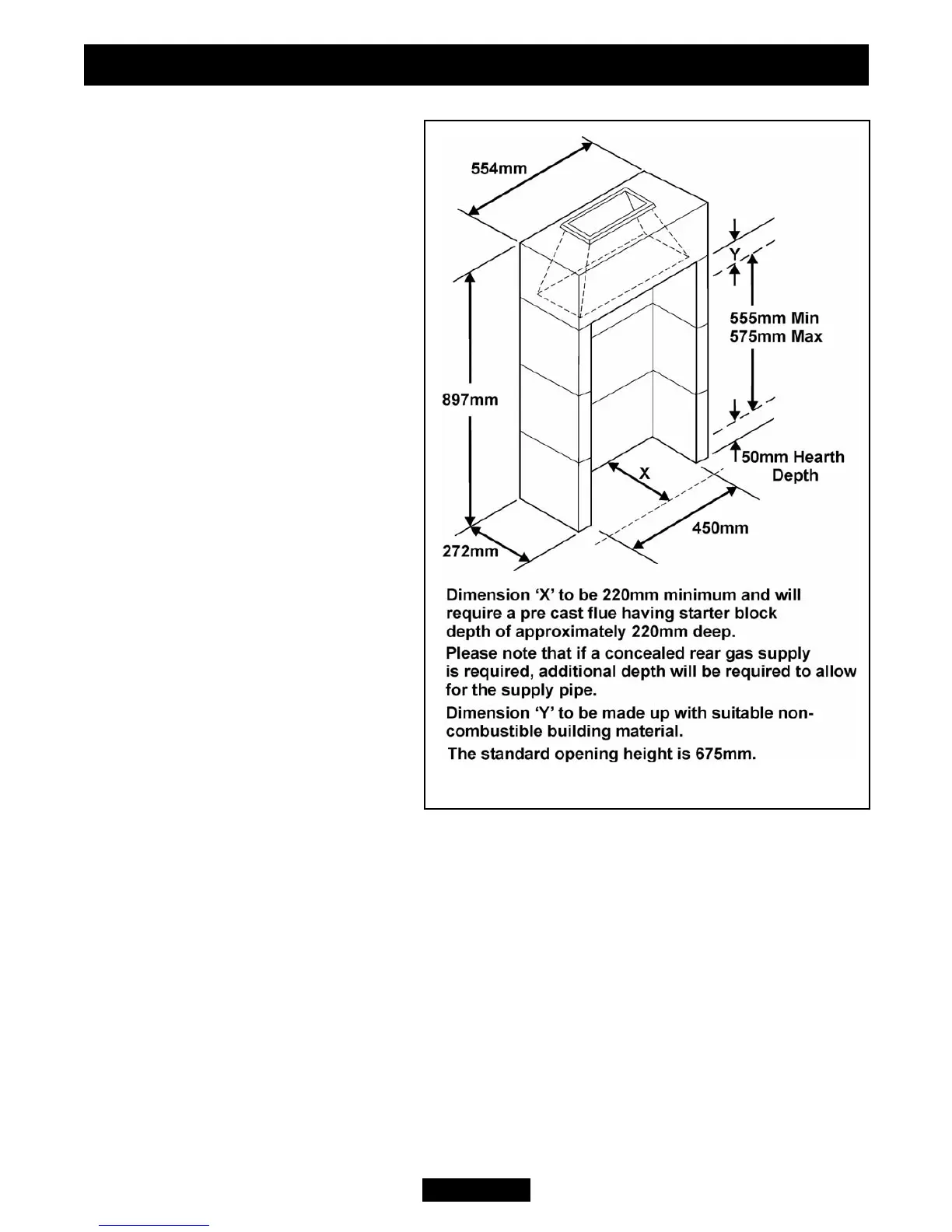 3.10.3 Precast concrete or clay flue block system and hearth.
