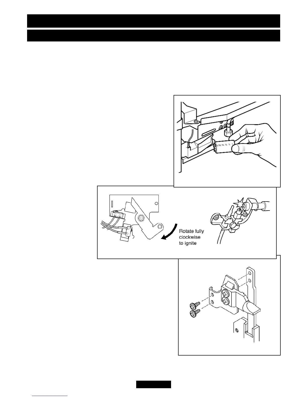 Fit the battery to the ignition block located below the burner tray at the left side (See