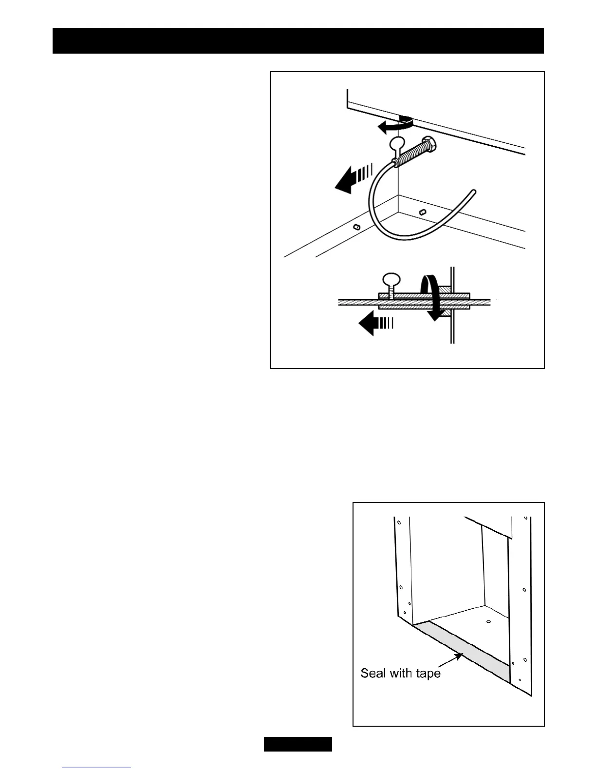 Using the floor sealing tape supplied, seal the bottom of the hotbox to the fireplace