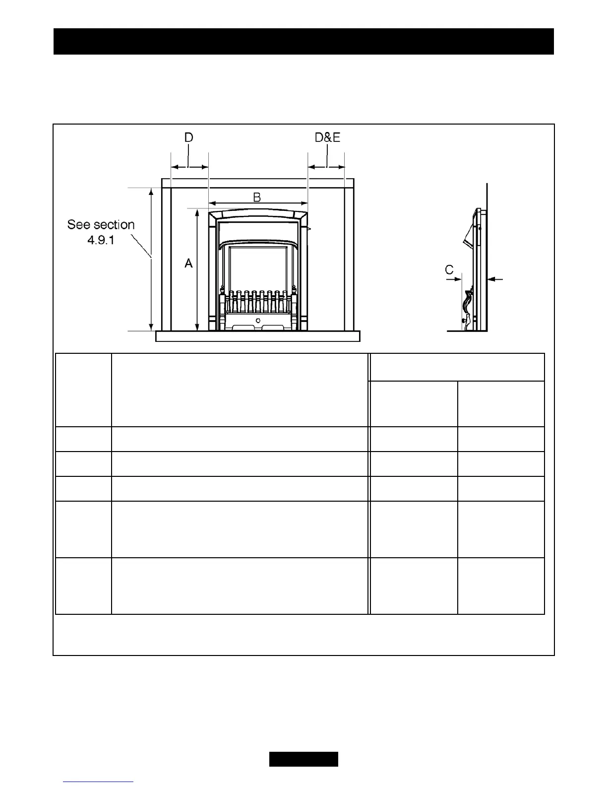 4.9.2 The minimum allowable distance from the outside of the appliance fascia to a