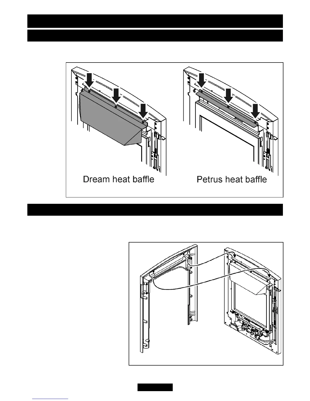1. The fire is supplied with a heat baffle. Locate the heat baffle to the top of the fire as