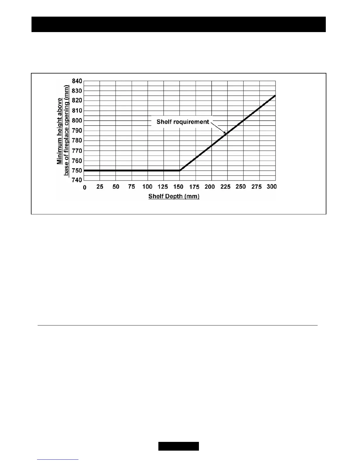 • For a shelf deeper than 150mm: 750mm + 12.5mm for every 25mm depth over