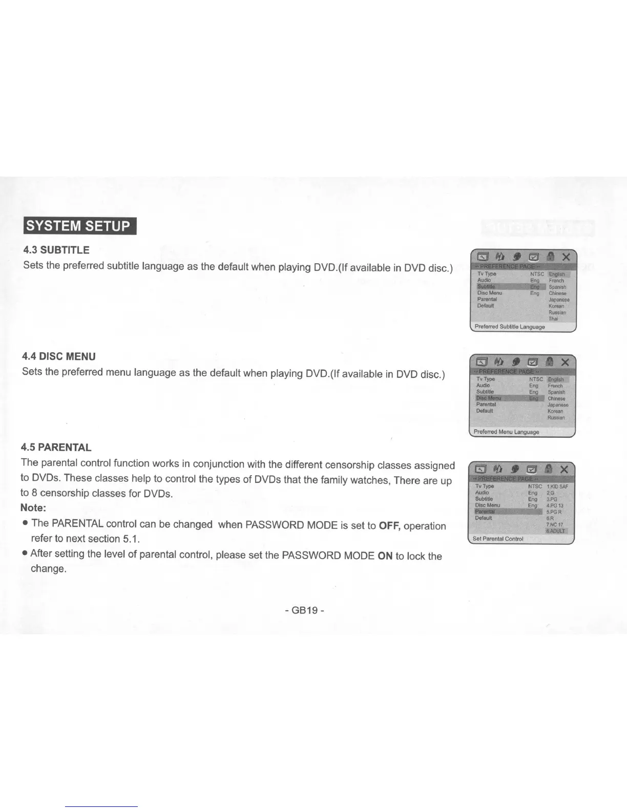 parental control, please set the PASSWORD MODE ON to lock the