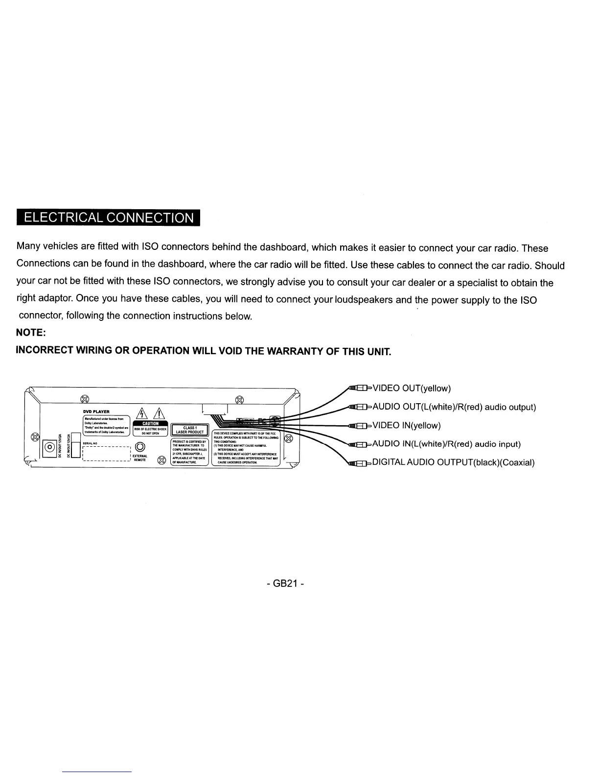 INCORRECT WIRING OR OPERATION WILL VOID THE WARRANTY OF THIS UNIT.