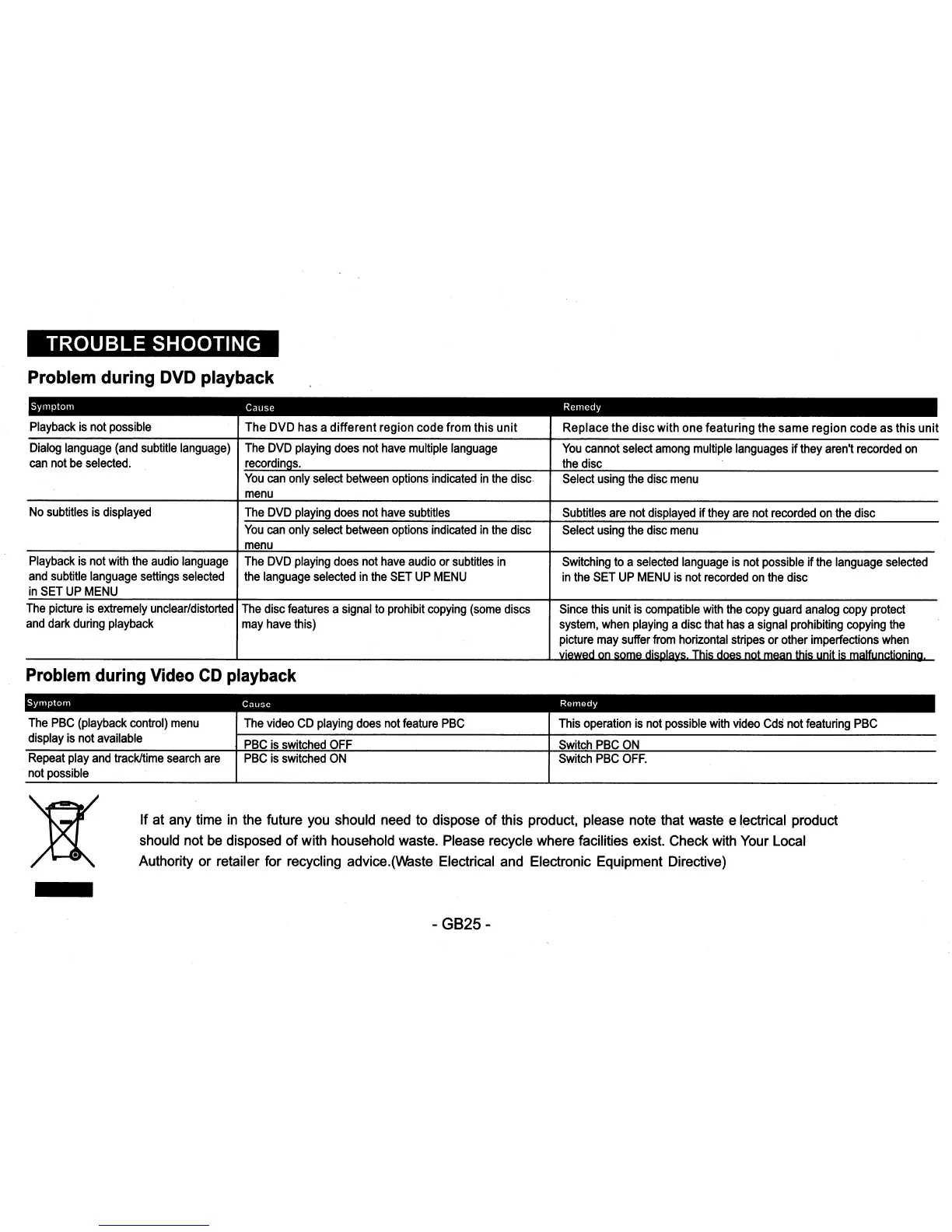 Problem during DVD playback