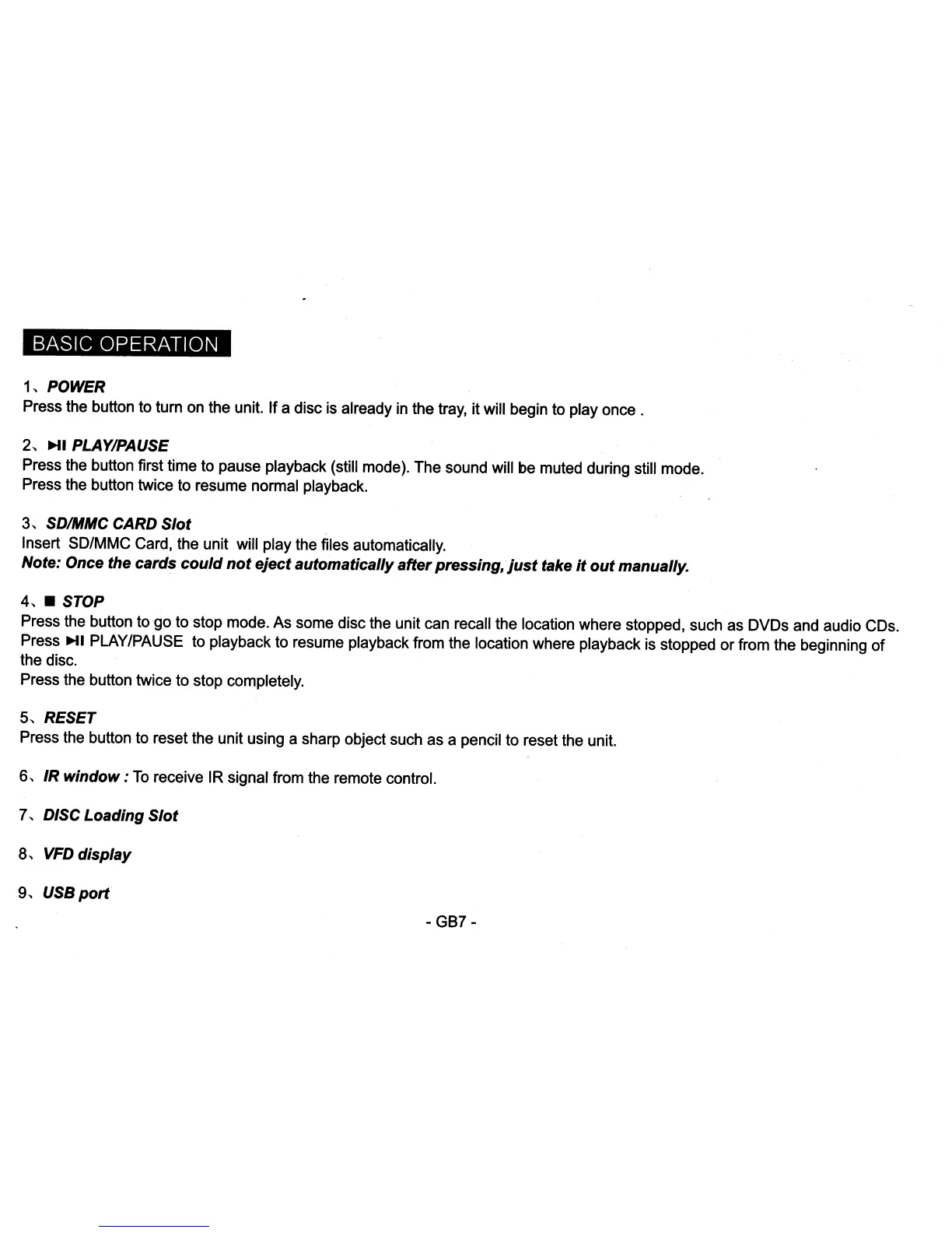 Insert SD/MMC Card, the unit will play the files automatically.