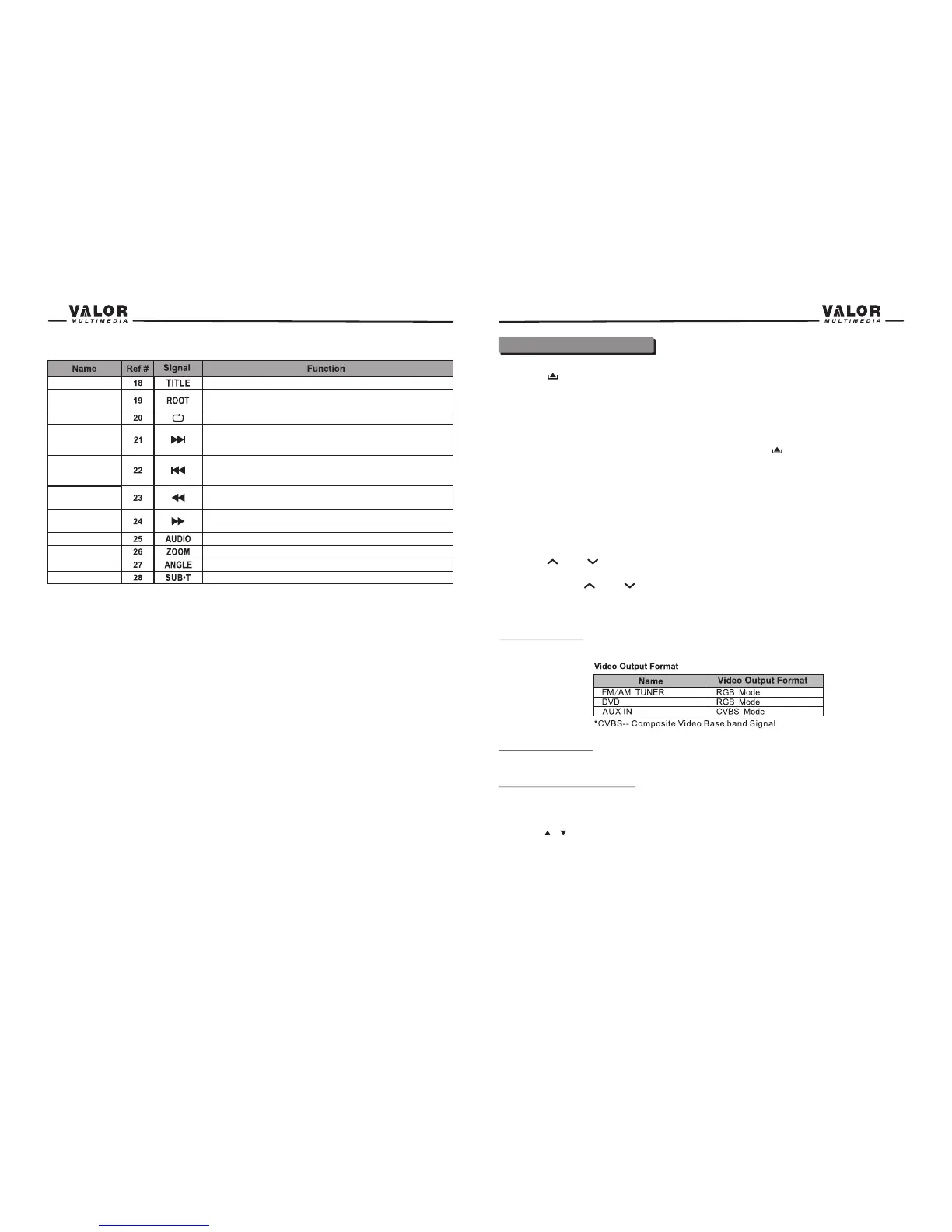 The table below shows the video output format for each source.