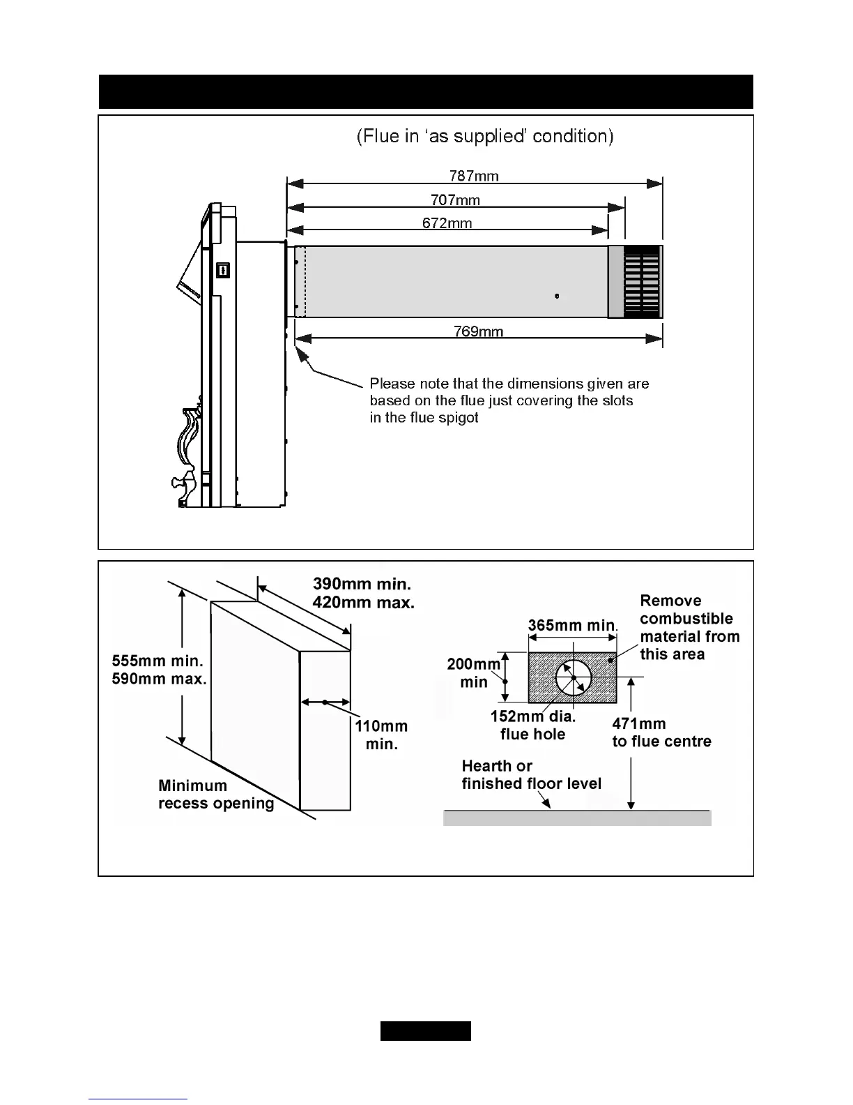 Figure 2. Recess and flue hole dimensions.