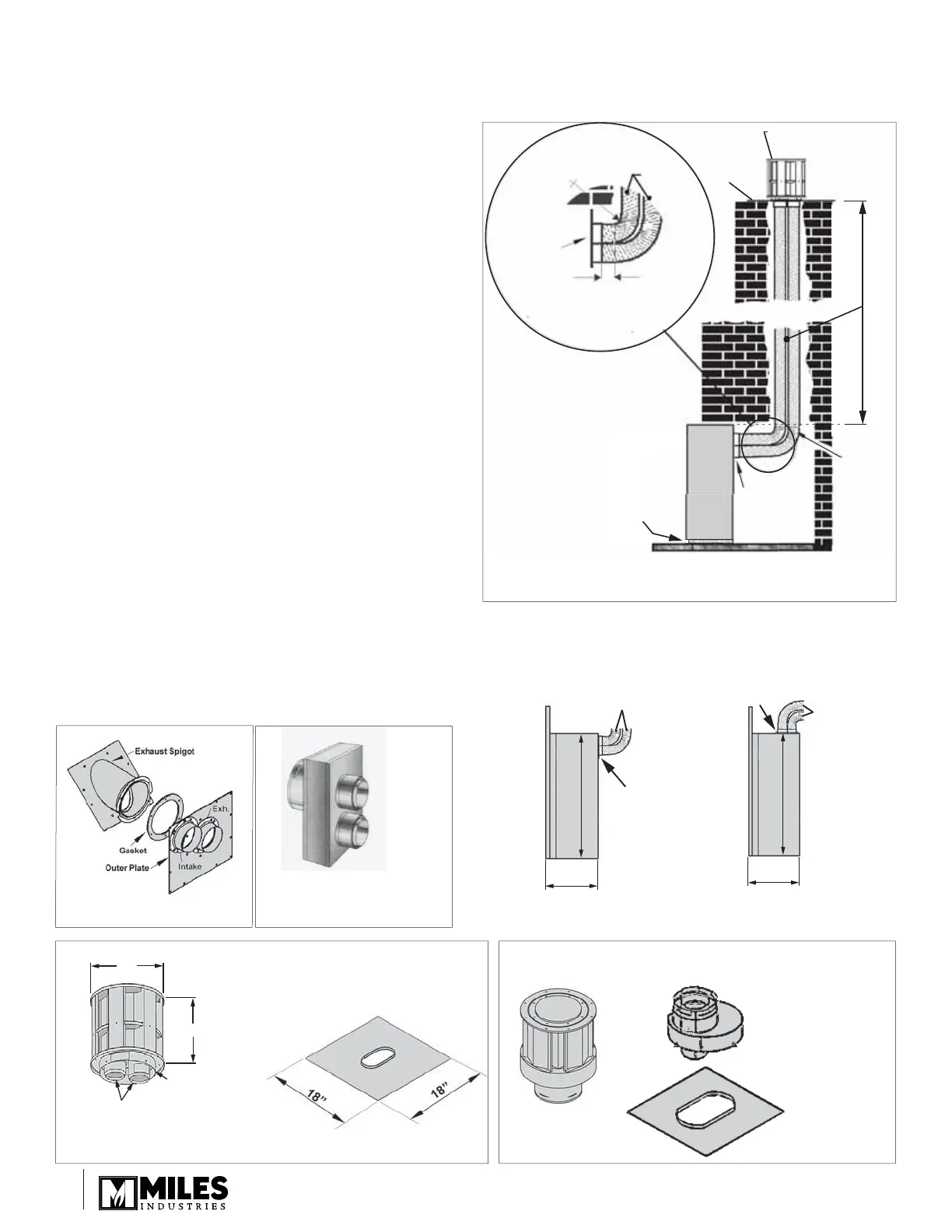 3-inch diameter fl exible chimney liner, co-linear termination kit and fl ashing and either high wind vertical vent