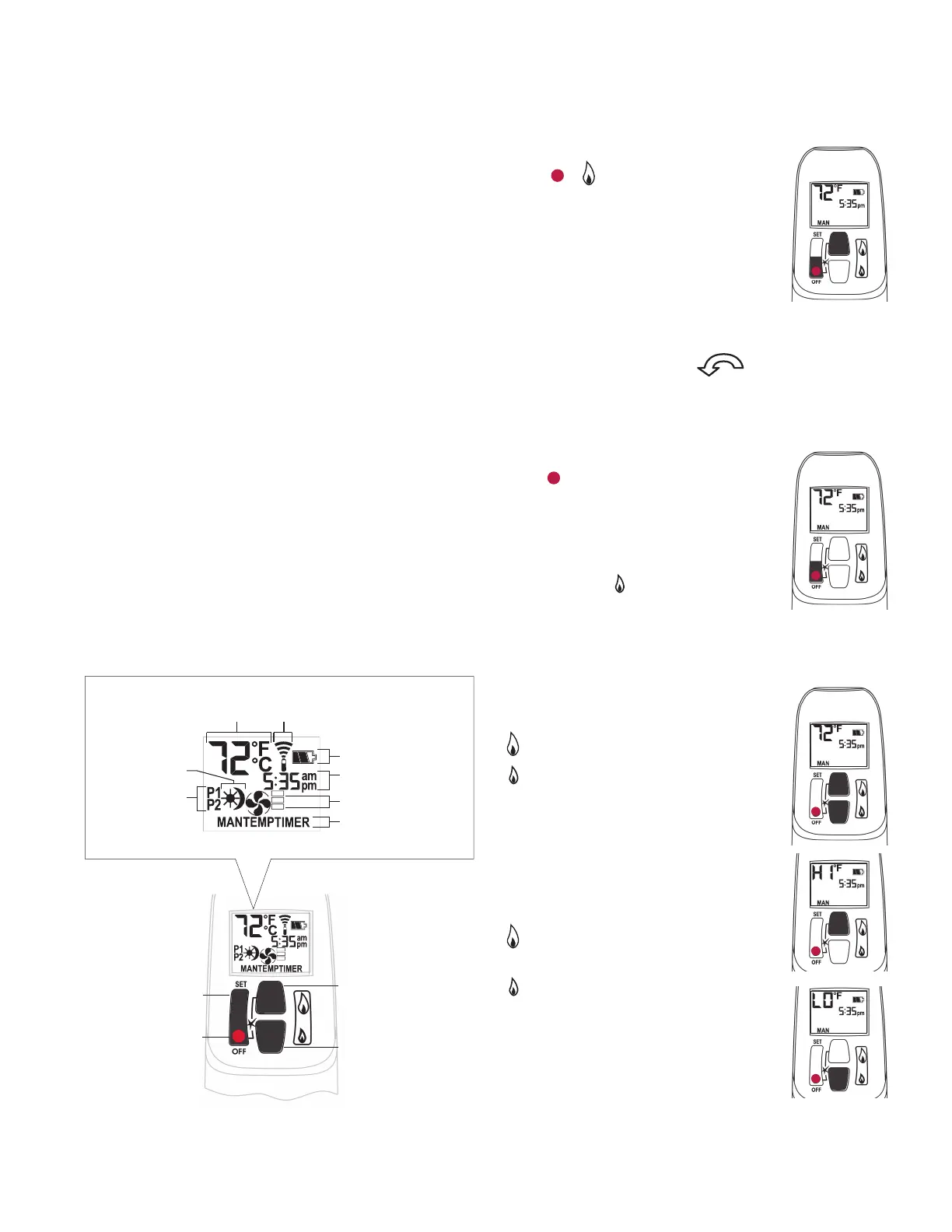 Note: In the TEMP or TIMER modes, the remote handset