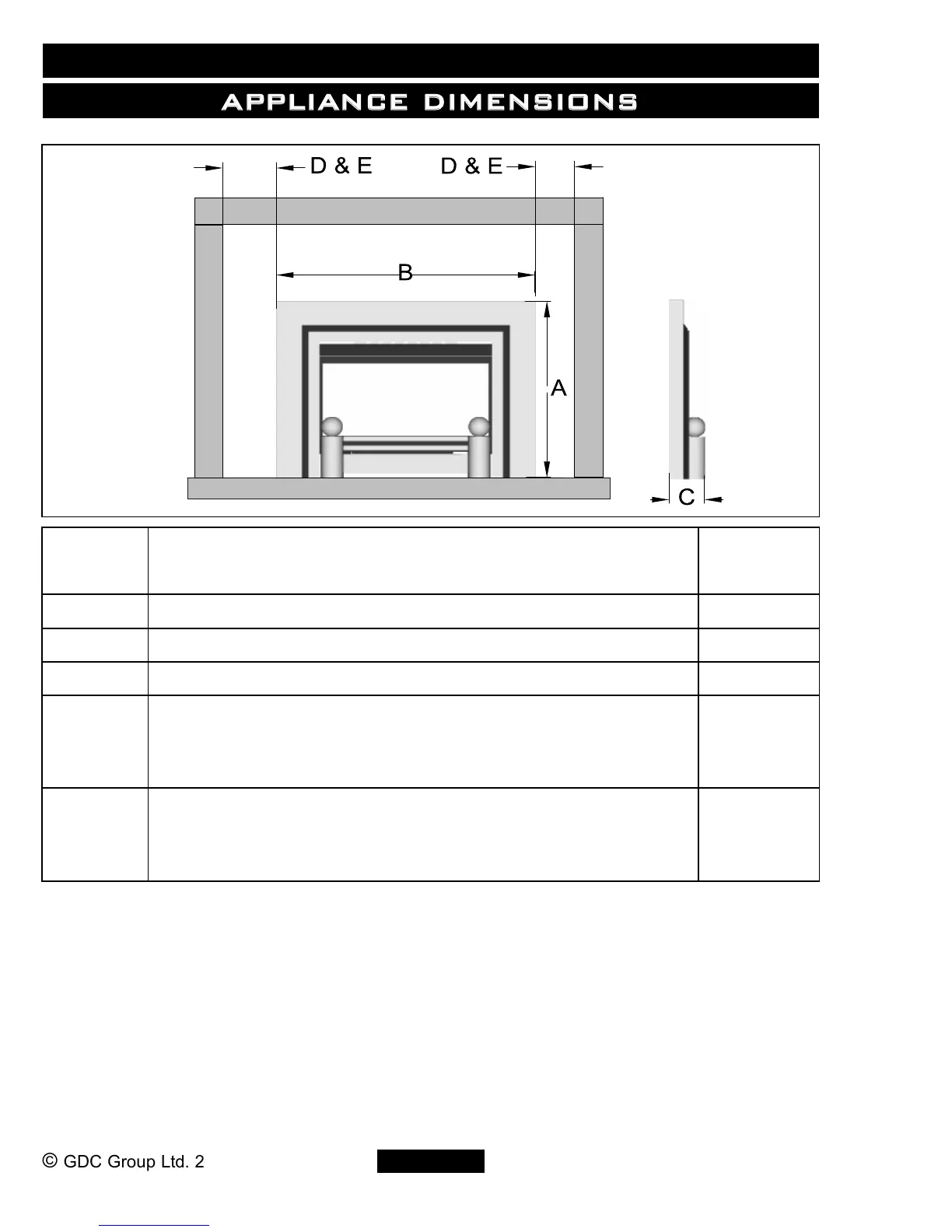 Figure 2. Blakely appliance dimensions and clearances (Dimensions are subject to