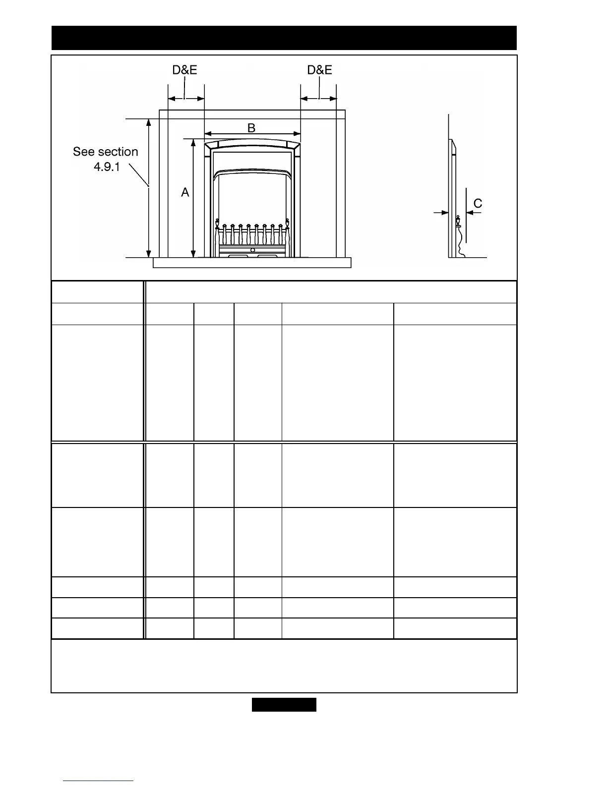 (The appliance dimensions ‘A’, ‘B’ & ‘C’ shown in the table are subject to