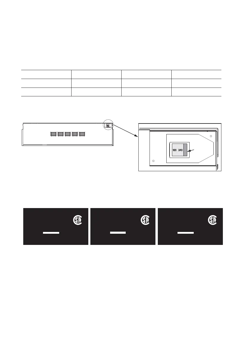 from 120V to 240V, access switch on the top, rear, right corner of the appliance.
