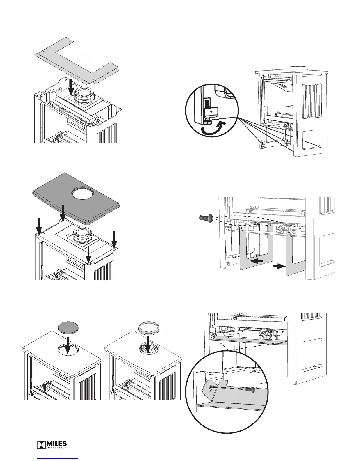 22. Install the top cast panel on the stove locating its