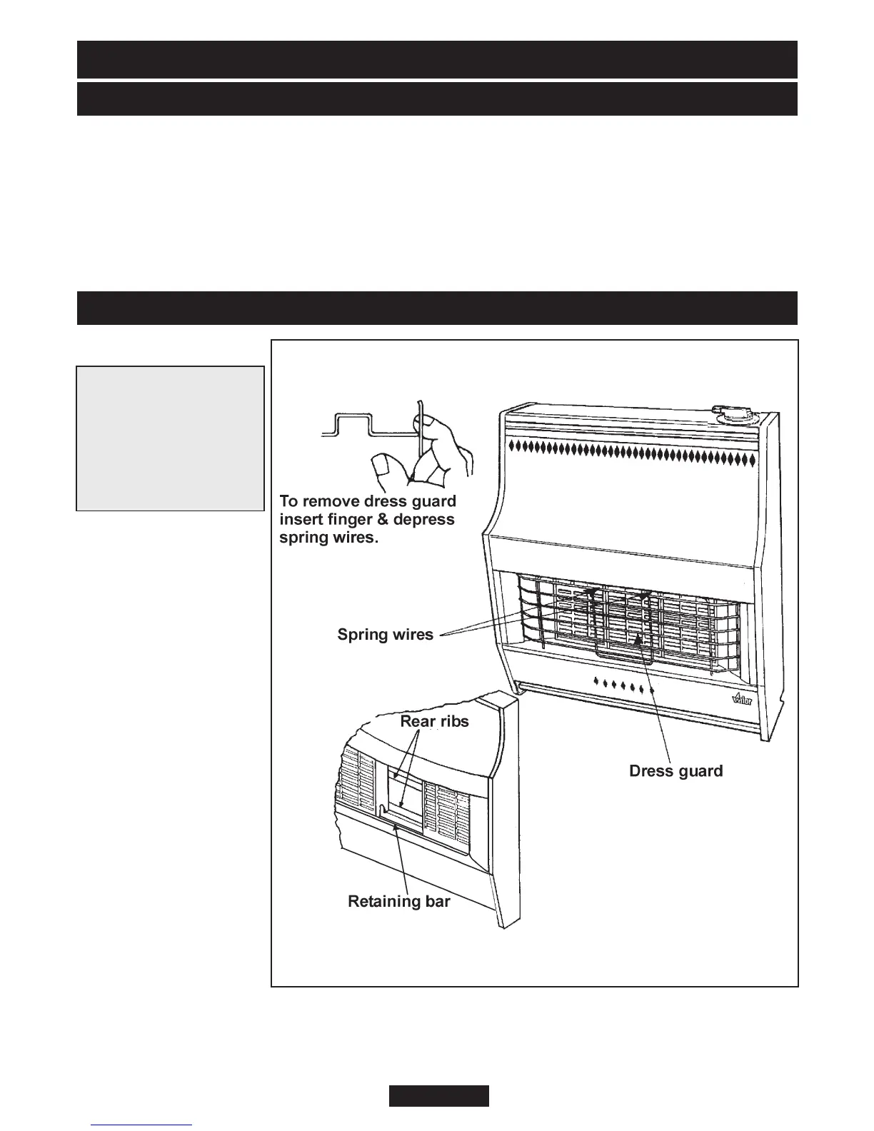 the radiant over and behind the retaining bar. It is important that the back face of the