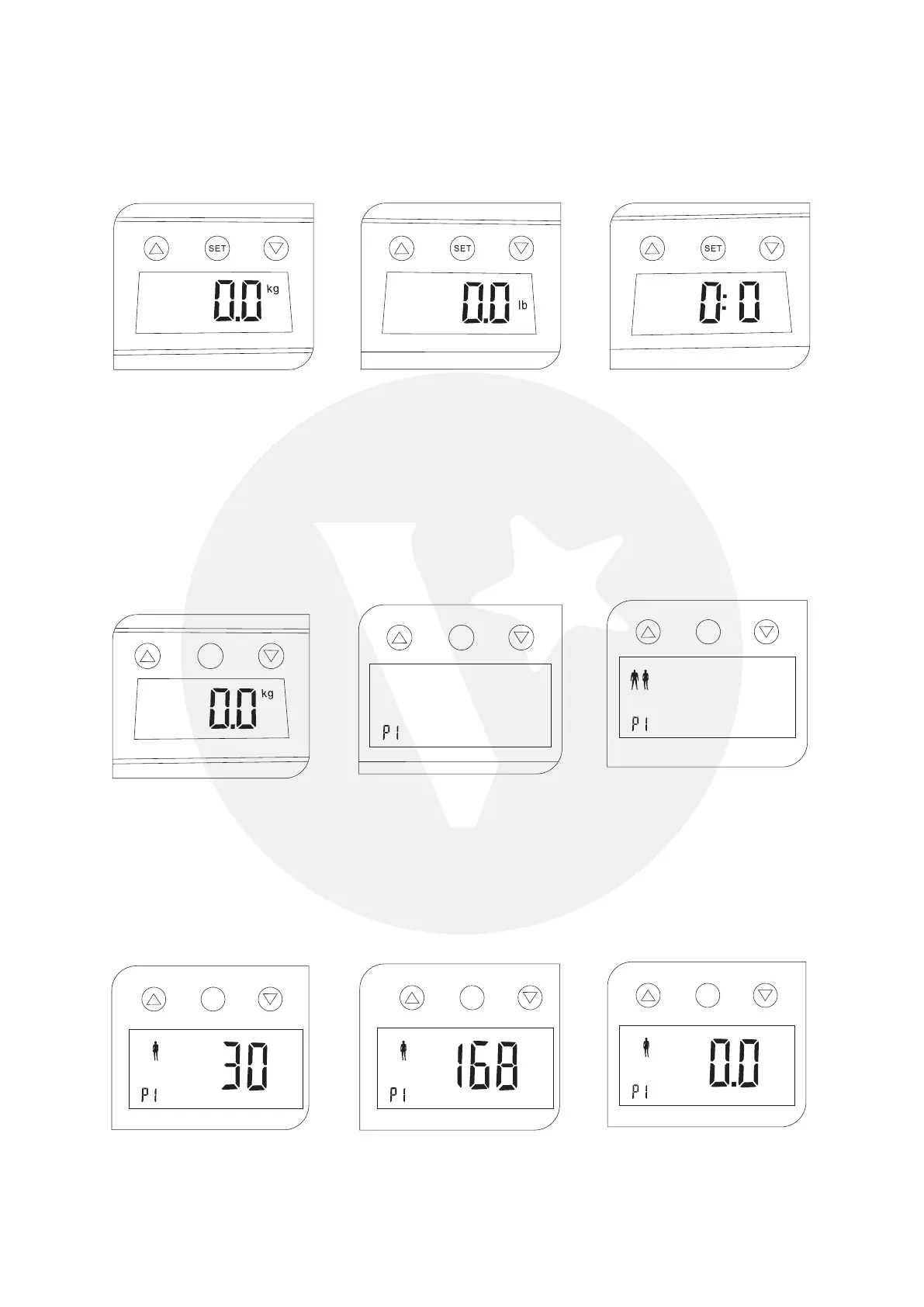 Press the ‘Up’ button to select measuring unit(kg/lb/st). The default unit is Kg.
