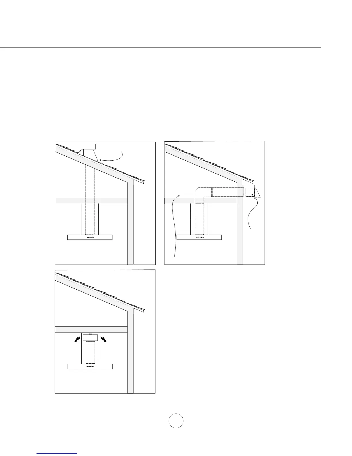 NEVER exhaust air or terminate duct work into spaces between walls, crawl spaces, ceiling, attics or garages.
