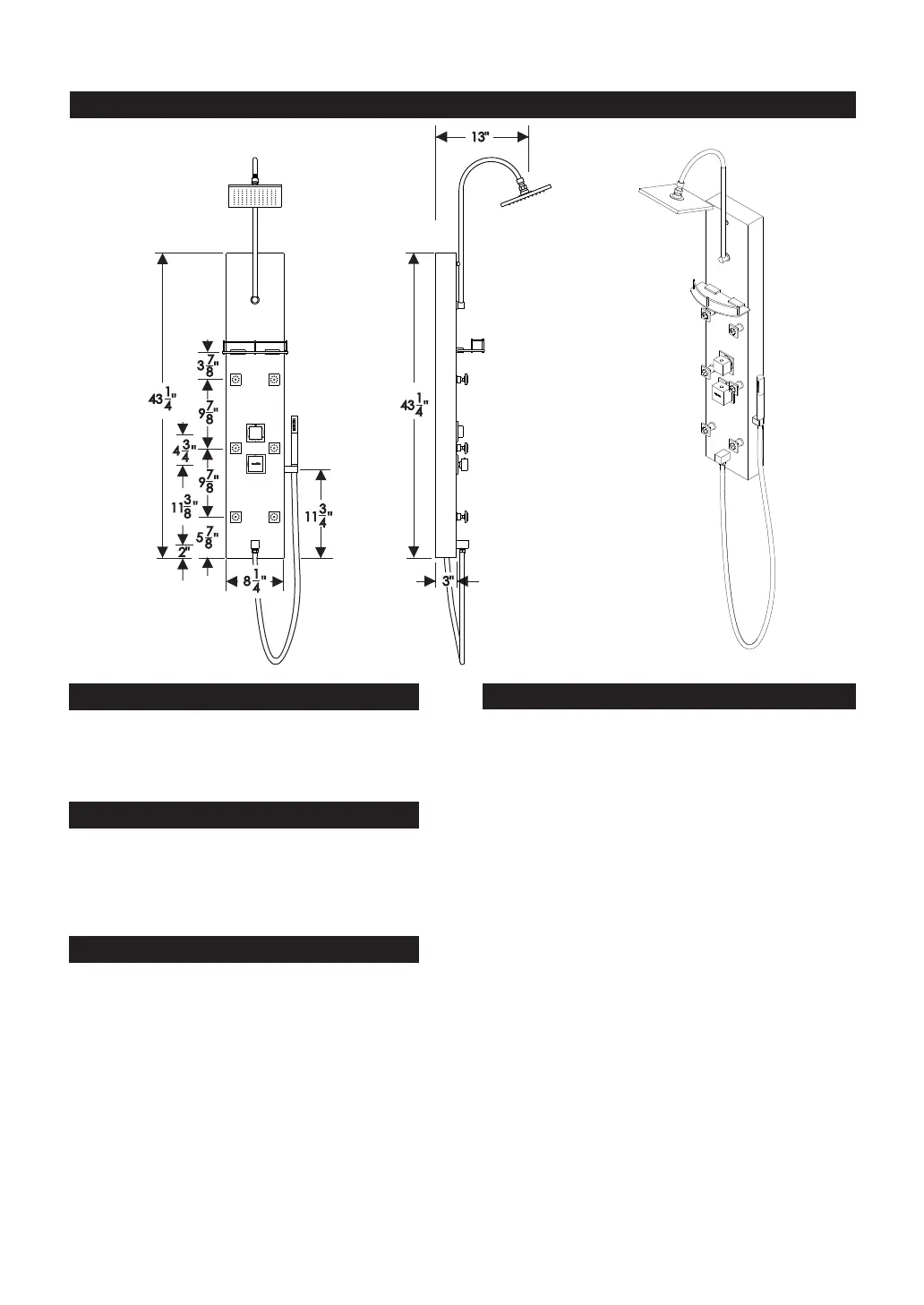 • (H) 43.3" x (W) 8.25" x (D) 3"