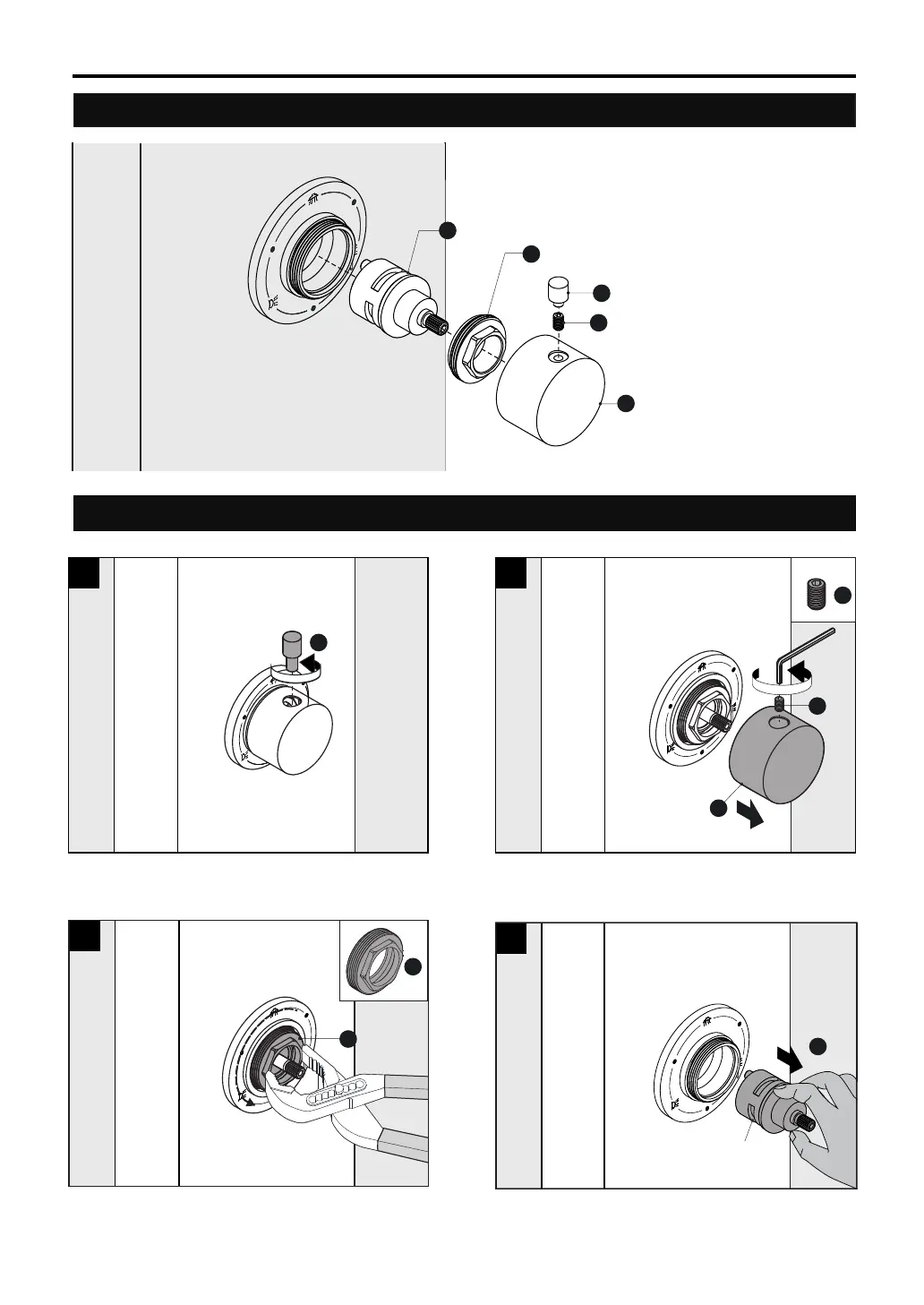 • Dévissez partiellement l’écrou libre (no 4) et enlevez-le. • Tirez sur la cartouche de dérivation (no 5) pour l’enlever.