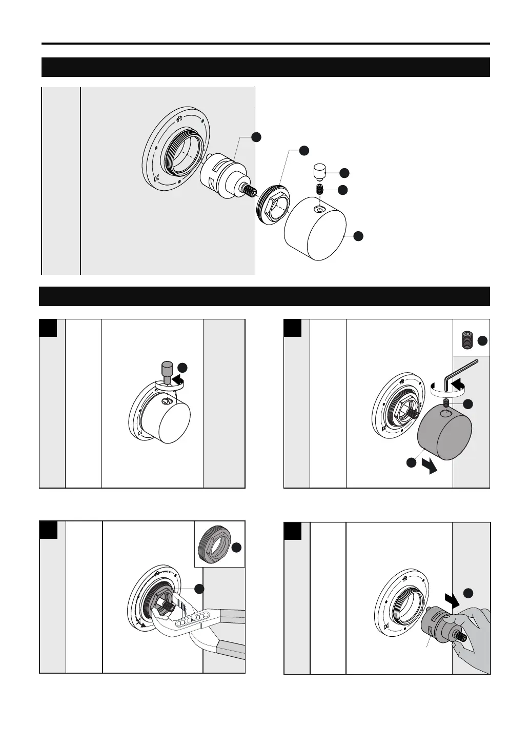 • Afloje y quite la tuerca libre (no 4). • Tire del cartucho desviador (no 5) para quitarlo.